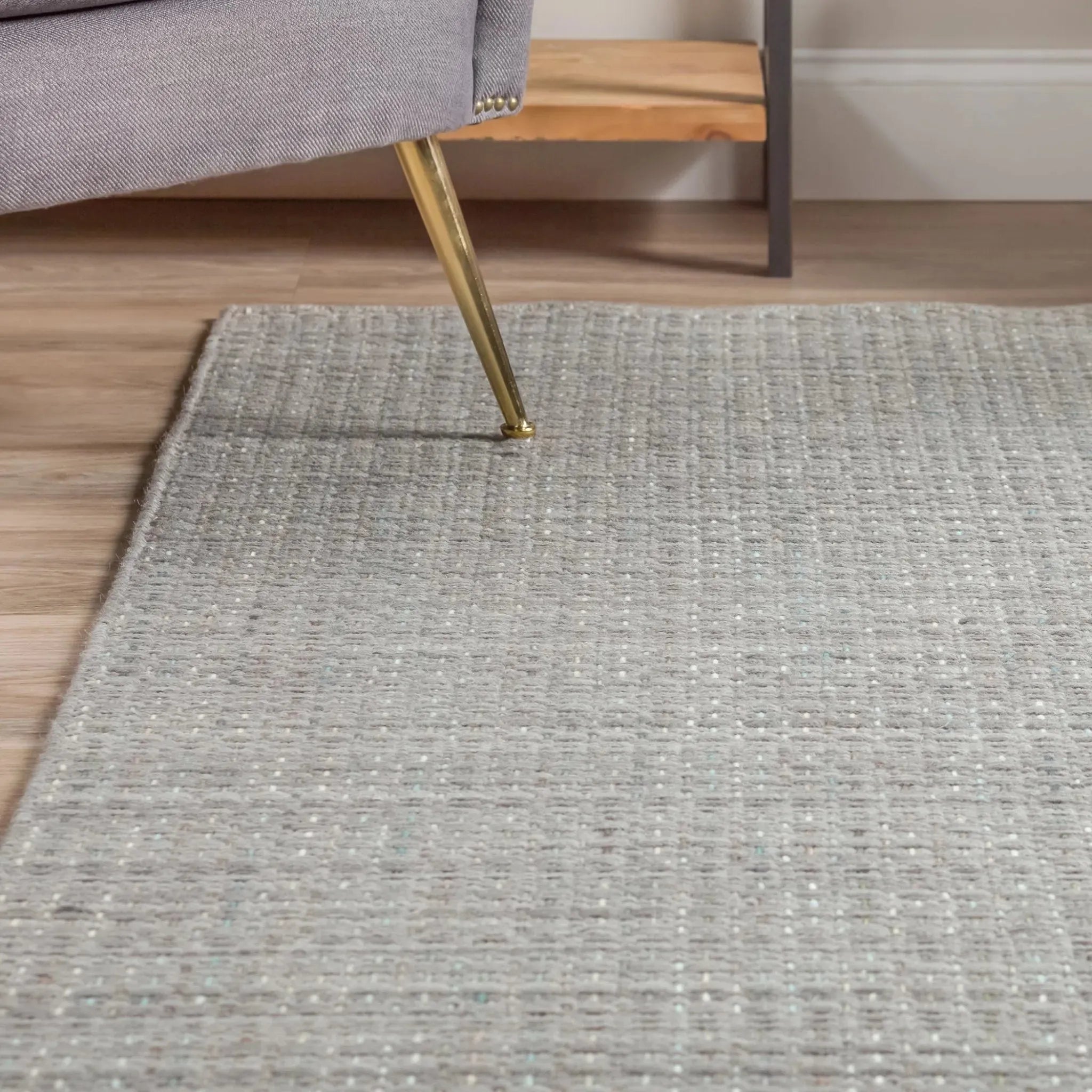 The Nepal collection features a multi-tonal, textural "sweater" weave. It is hand loomed of 100% wool and has a soft cotton backing.