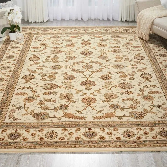 Nourison 2000 redefines luxury with traditional Persian and European designs, hand-tufted of luxurious wool and silk for a dense pile with deeply compelling textures and intriguing aesthetics that are certain to command attention in any setting. This opulent, versatile and appealing collection is available in a wide variety of shapes and sizes, including ovals, rounds and octagons. Custom sizes available. This rug is perfect for your living room, dining room, den, bedroom, or any living space.