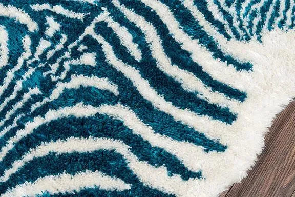 Take a walk on the wild side with Novogratz Kalahari faux fur zebra rugs in statement-making shades of black, pastel pink and strong teal. This rug is perfect for your living room, dining room, den, bedroom, or any living space.