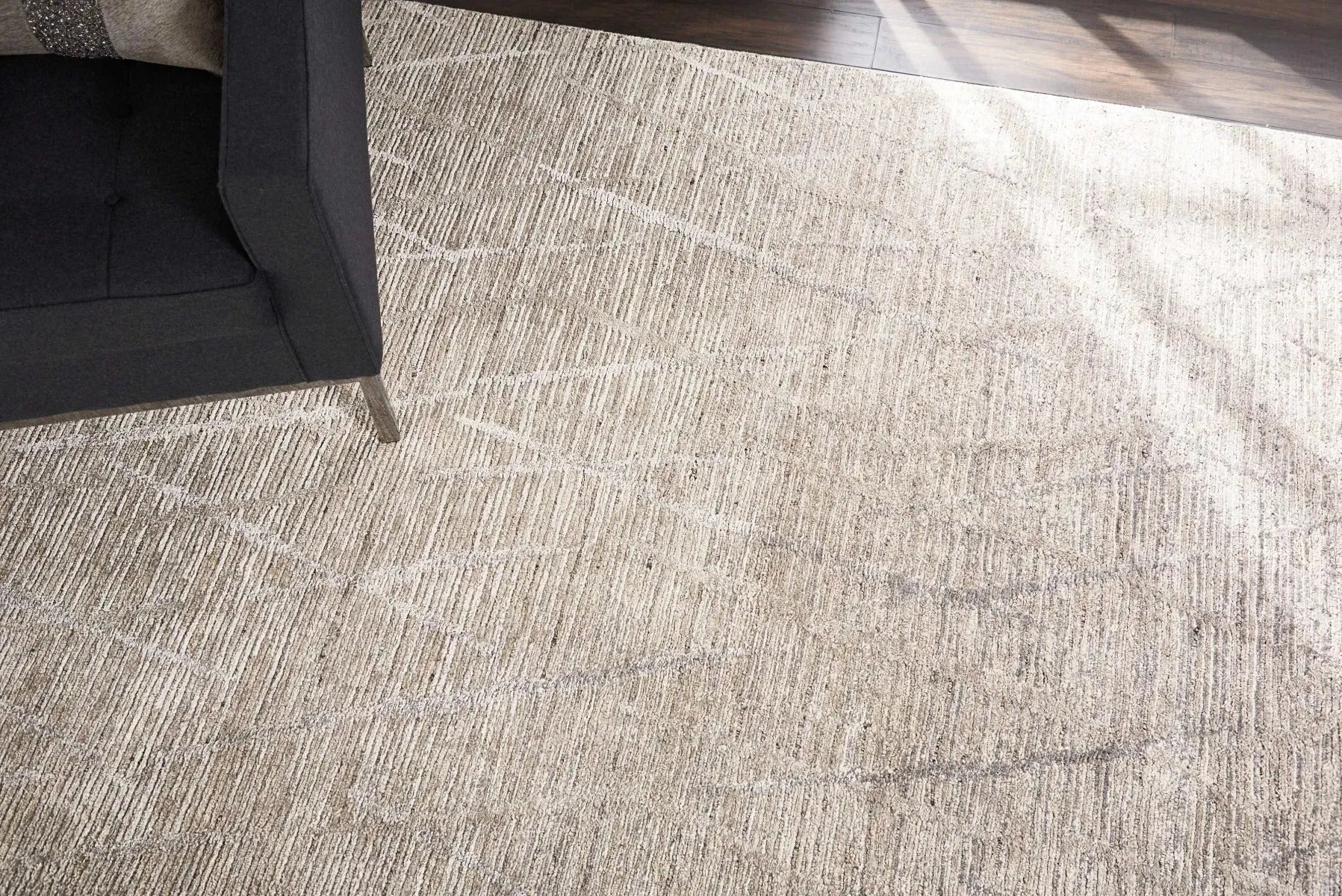With their soft and luminous hand-knotted pile, the area rugs of the Ocean Collection invite you to dip in your toes. Offered in a range of shore and surf neutrals, these irresistible rugs are an easy choice for home comfort and style. The marvelous chenille-like texture creates a natural striped effect of shadow and light. Choose from a selection of solid designs, or rugs with a subtle pattern of slender crosshatch lines for an added dash of interest. Either way, youåÕll enjoy Ocean depths of pleasure. Explore the depths of the Ocean Collection with this luminous, hand-knotted area rug. Delicate lines of slender crosshatching add graphic interest and a contemporary slant to its sensual waves of ribbed texture. Soft and sensuous in tones of driftwood ash, awash with an interplay of shadow and light.