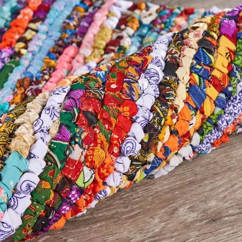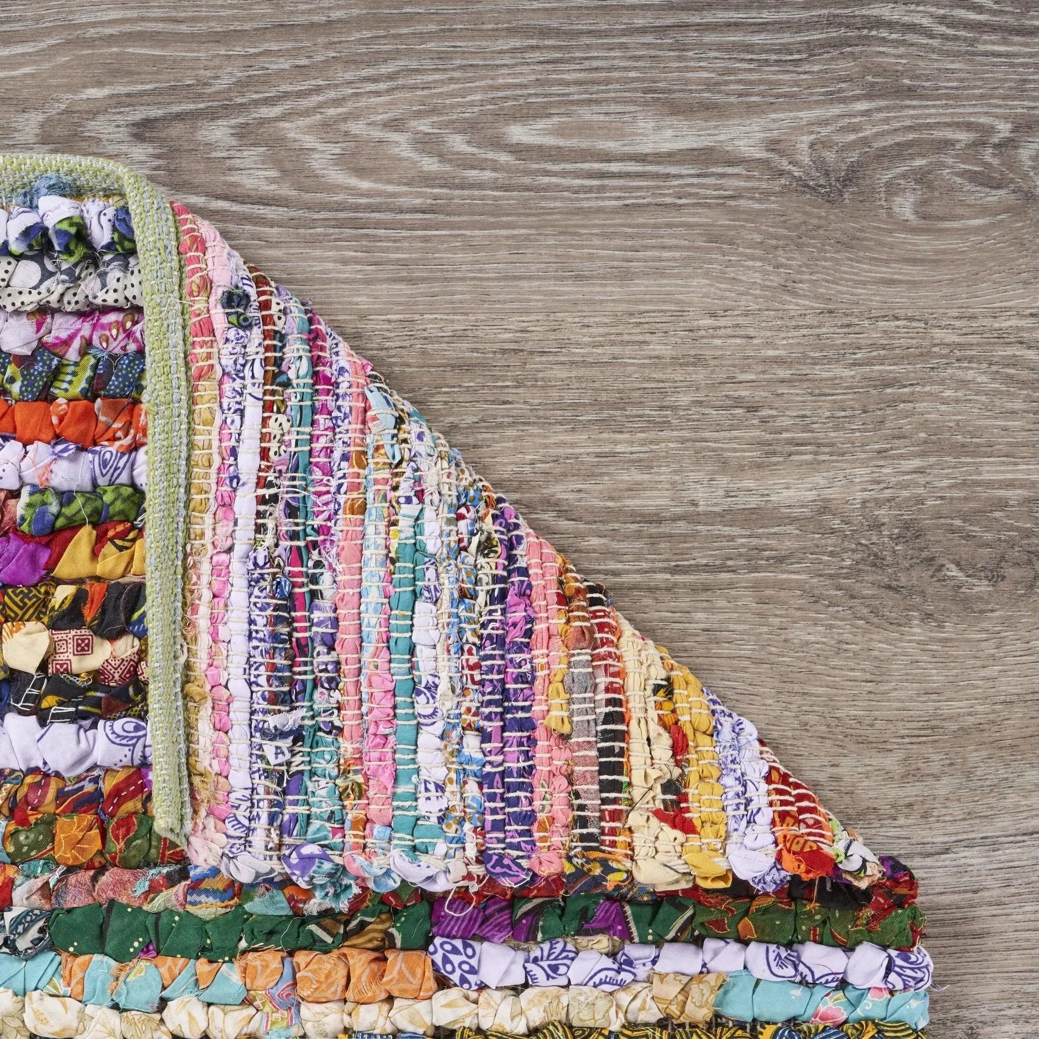 Look for a pop of color? Well, look no further! This piece has used recycled fabrics to bring you unique collisions of colors. Whether it be in the kitchen, entryway, or even kid's room, this piece is made to shine among your collection. No matter how small the space, this piece's texture allows the colors to blend well with a variety of themes. However you style it, this piece is bound to stand out!
