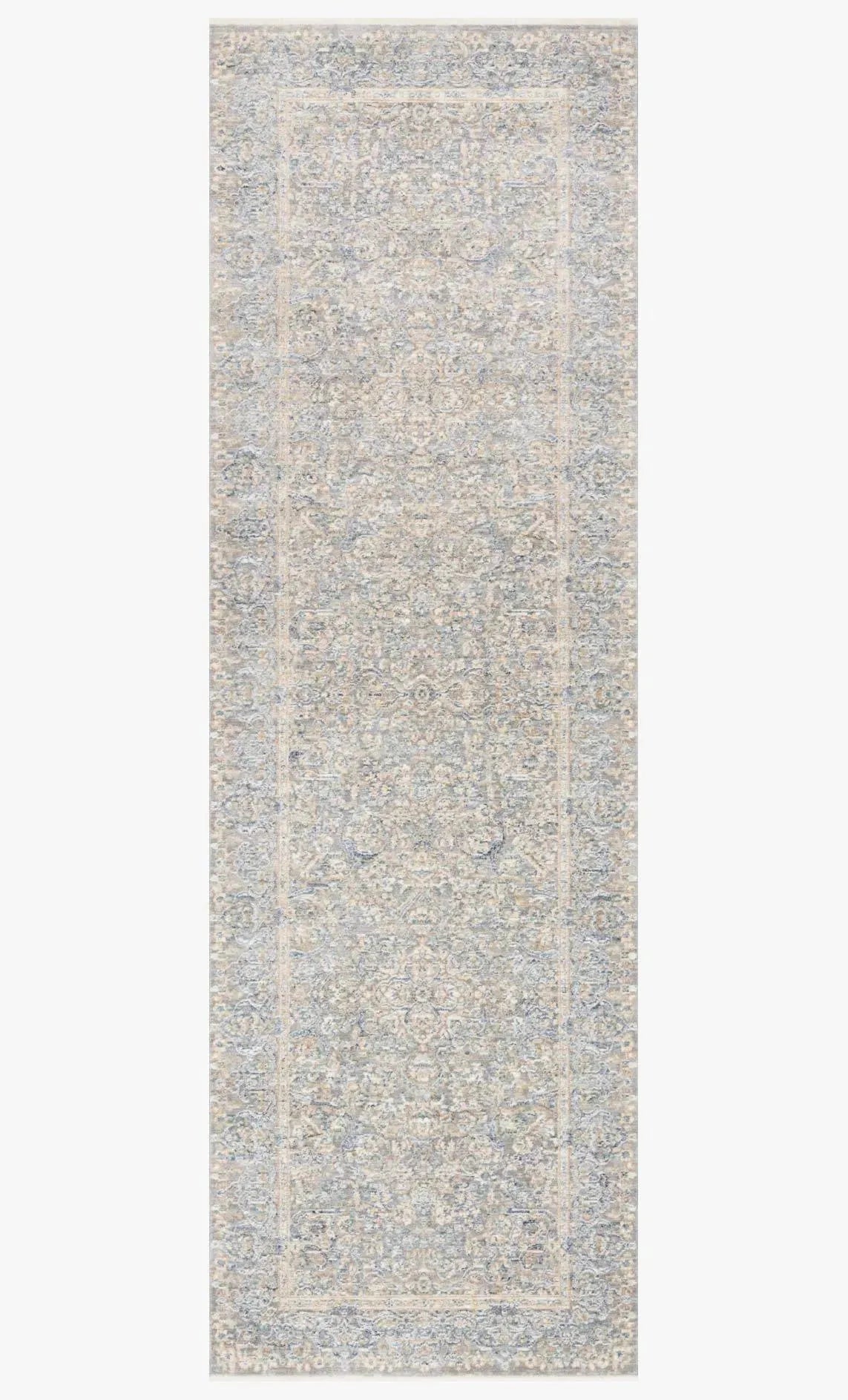 The Parisa PSA06 Denim/Multi Rug comes in various sizes, including 2x10, 5x7, 8x10, 8x11, 9x13, and 12x15 feet, accommodating different room dimensions.
