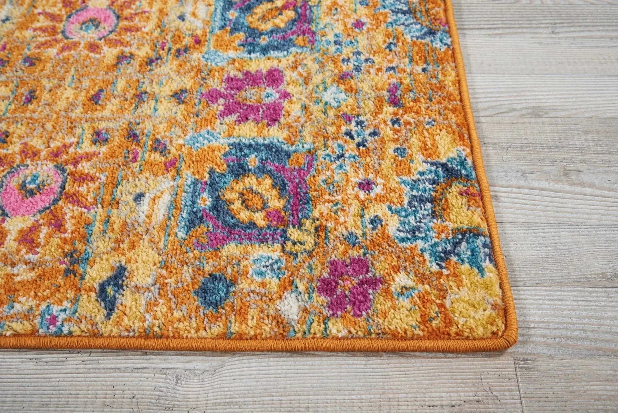 The Parisa PSA06 Denim/Multi Rug comes in various sizes, including 2x10, 5x7, 8x10, 8x11, 9x13, and 12x15 feet, accommodating different room dimensions.