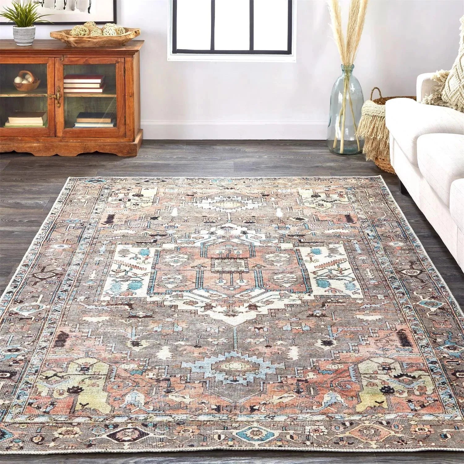 Similar to Percy PRC39AJF Taupe/Red Rug
