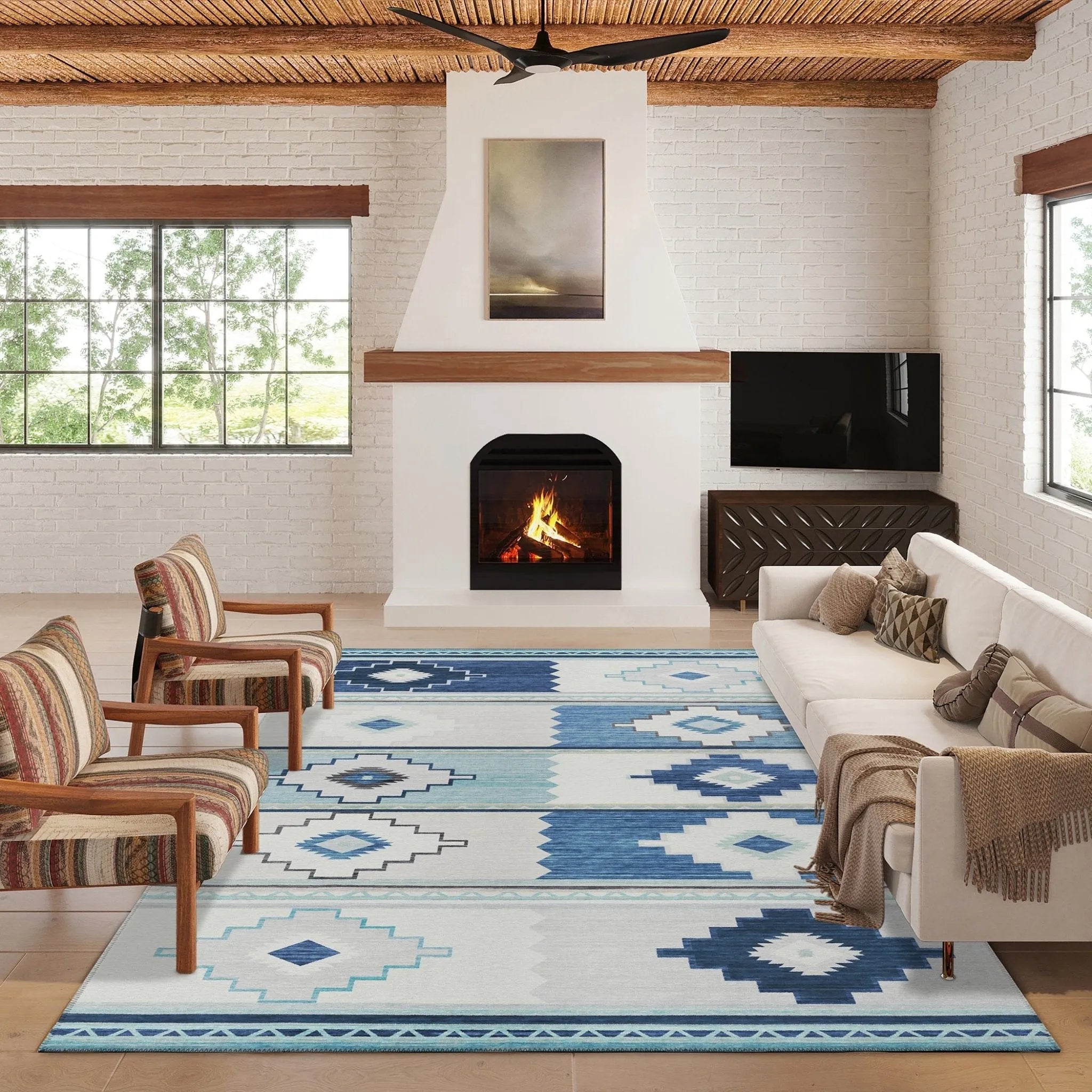 Phoenix collection has great casual southwestern lodge feel. Featuring an ultra-soft and ultra thin pile, each rug is made with 100% polyester pile complete with a non-skid backing. Crafted in the USA using Foreign & Domestic materials and US labor. They are UV Stabilized for indoor and cover outdoor spaces.