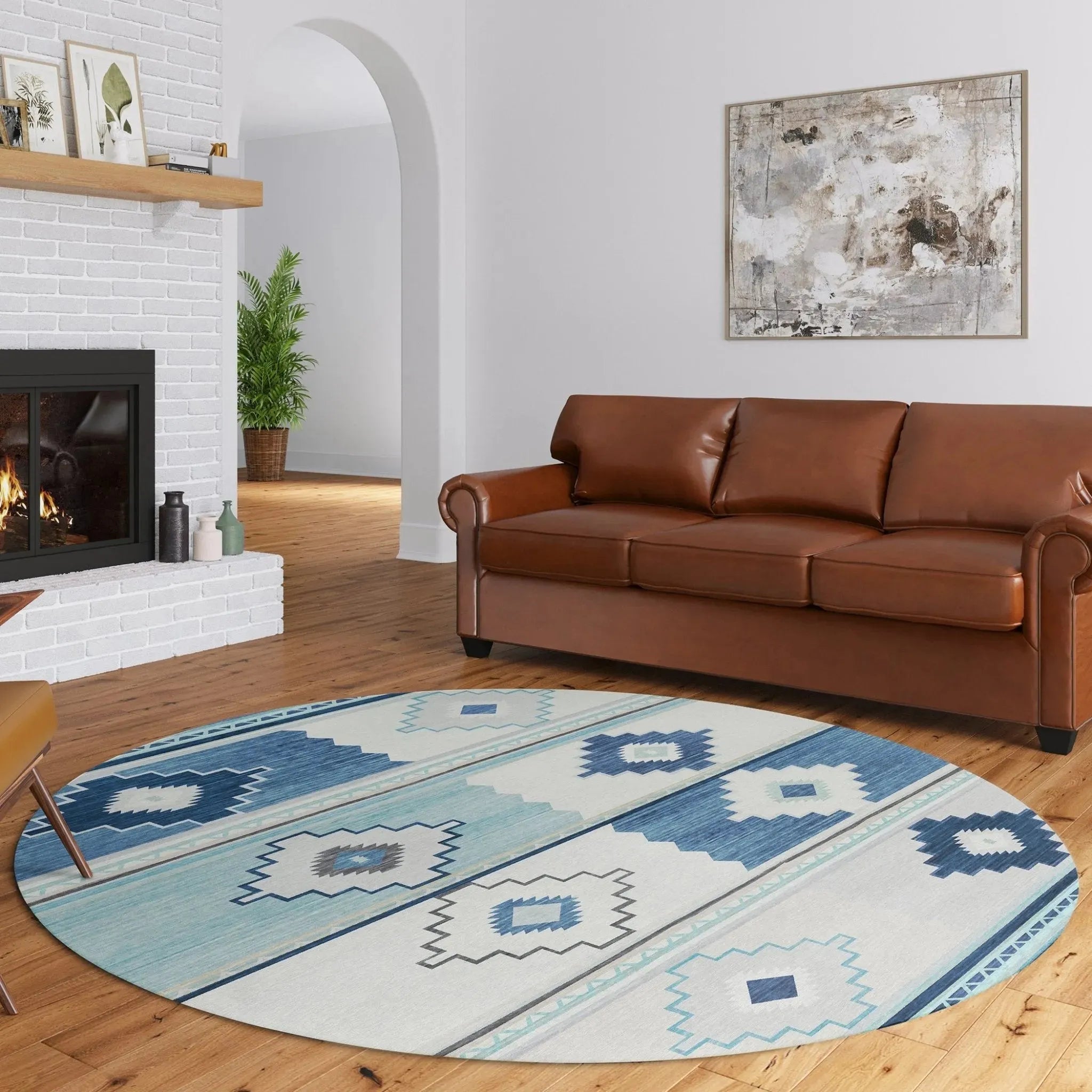 The Parisa PSA06 Denim/Multi Rug comes in various sizes, including 2x10, 5x7, 8x10, 8x11, 9x13, and 12x15 feet, accommodating different room dimensions.