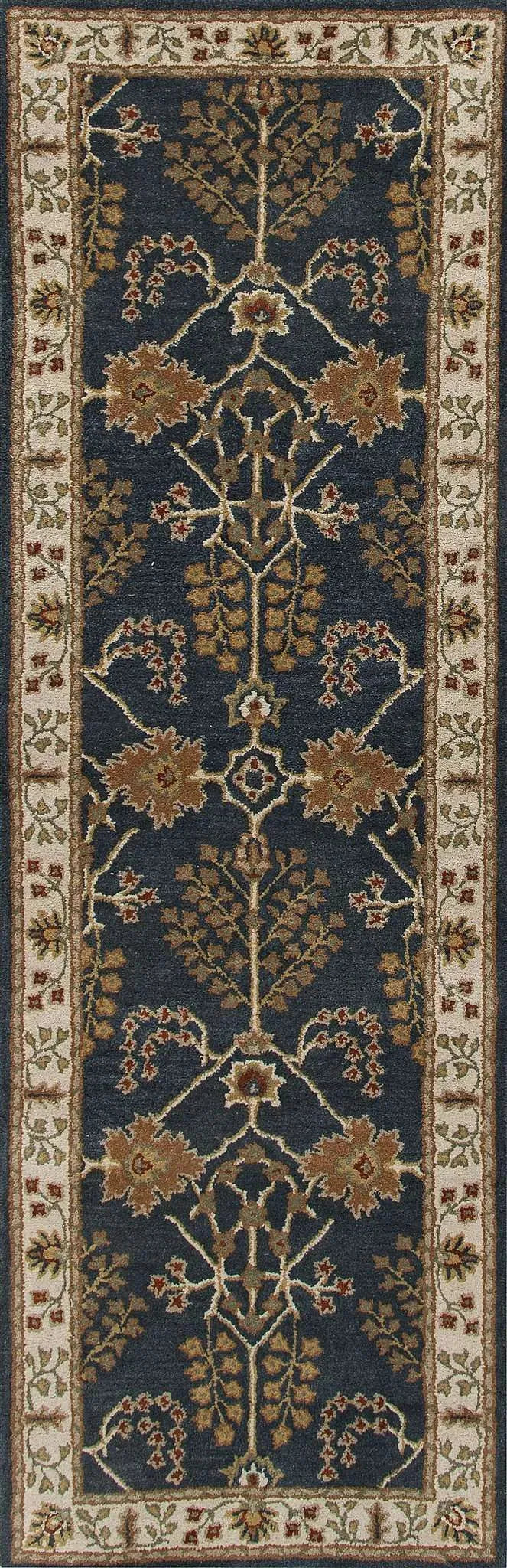 The Parisa PSA06 Denim/Multi Rug comes in various sizes, including 2x10, 5x7, 8x10, 8x11, 9x13, and 12x15 feet, accommodating different room dimensions.