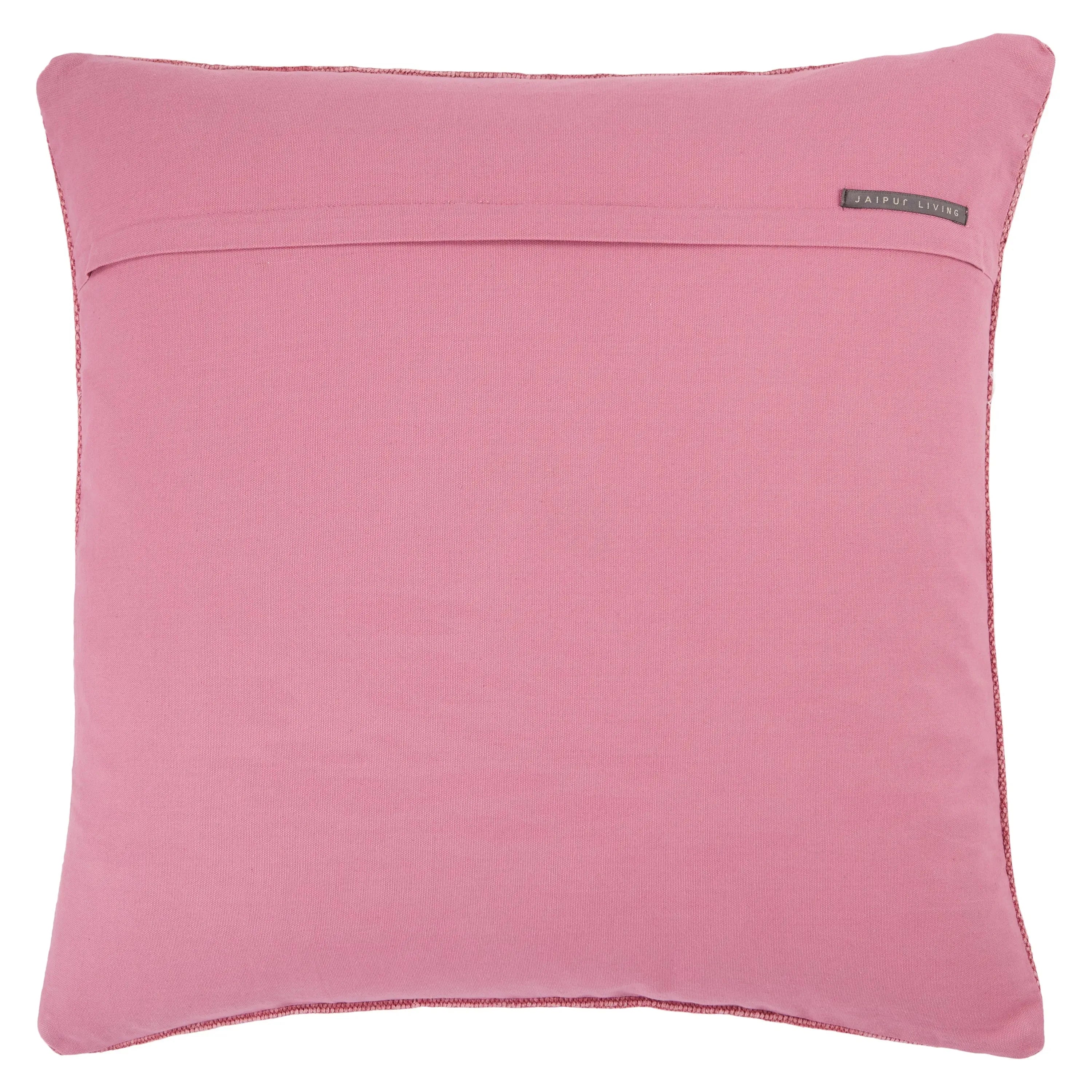 Inspired by Moroccan Sabra styles, the Puebla collection boasts vibrant color palettes and intricate tribal embroidery. The Shazi throw pillow features an on-trend pink colorway with tan details and a textural, cotton weave.