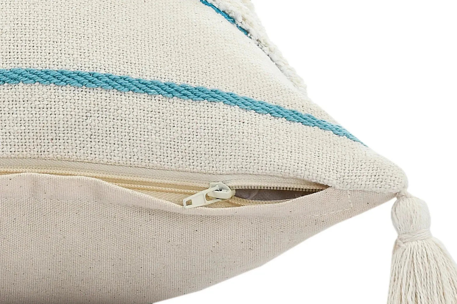 The Quarry pillow collection unearths a tranquil combination of soft, over tufted textures and muted gem tones to create a natural ambiance in your space. These elemental accent pillows offer a centering bohemian-spirited style to any collection. This particular addition features accent shades of aqua, turquoise, and jade alongside a crisp canvas white framework. Handcrafted with the customer in mind, there is no compromise of comfort and style with the pillow line we create.