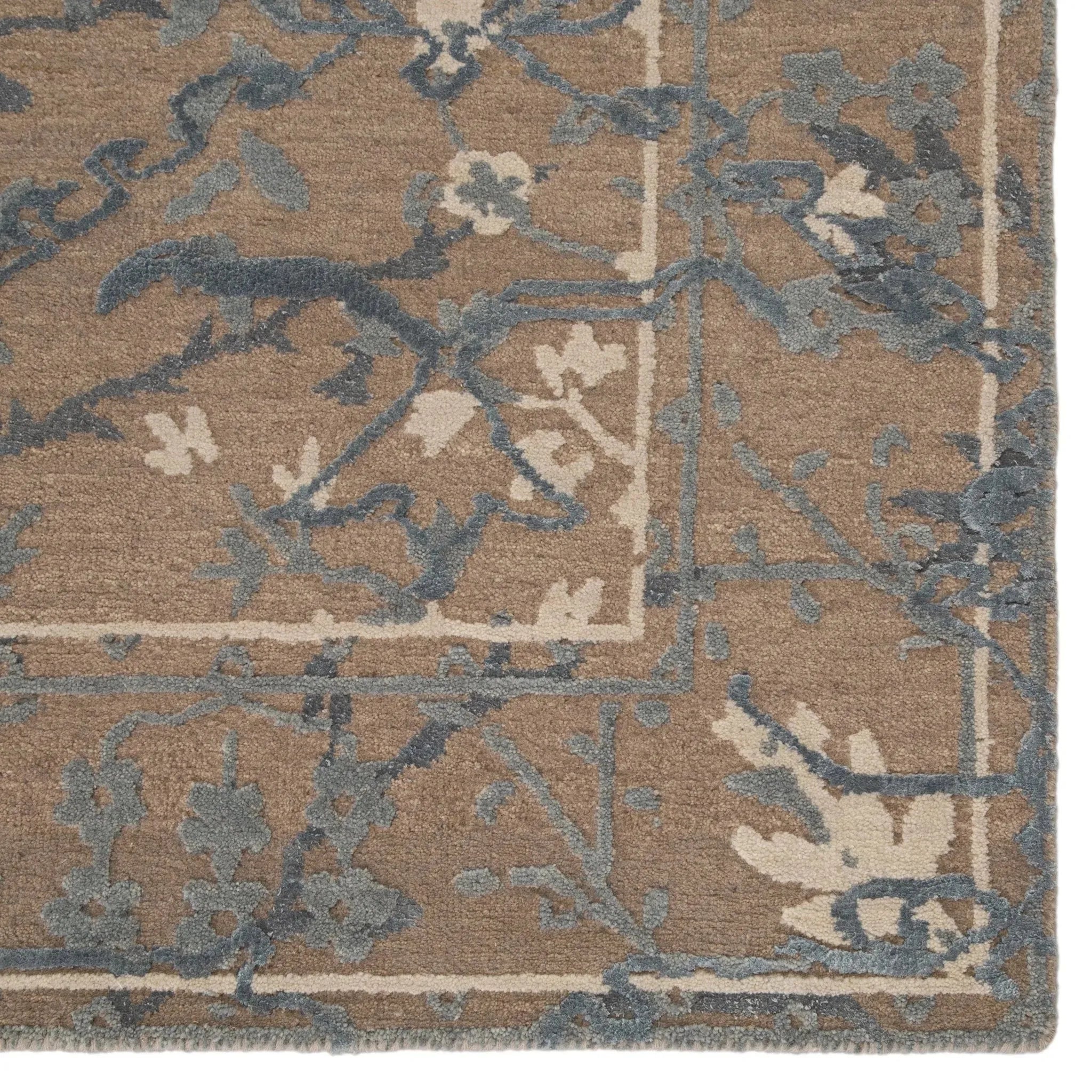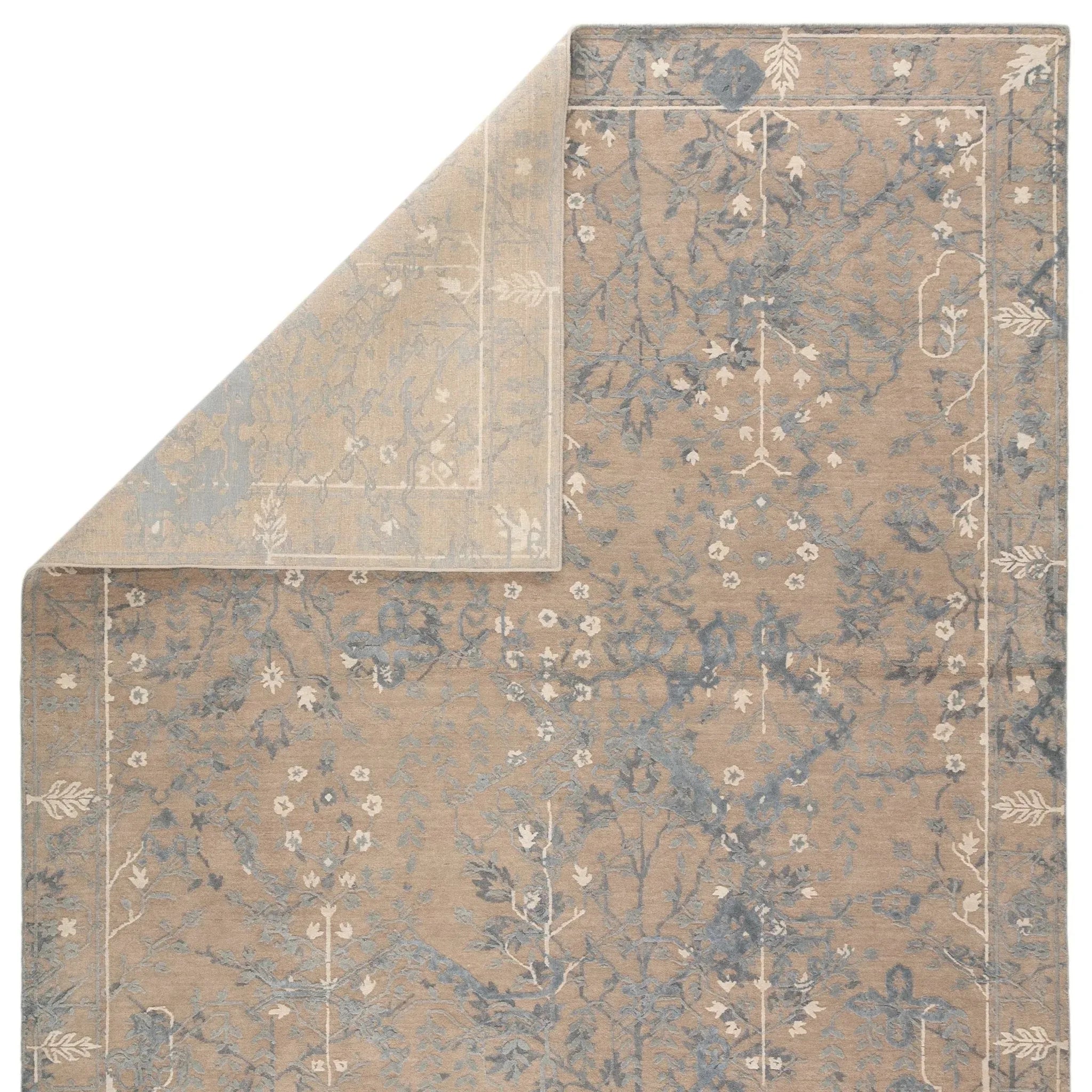 Steeped in both history and modern style, the Reconnext collection by Jenny Jones combines globally inspired motifs with on-trend colorways and re-imagined patterns. Both refined and chic in the same moment, the perfectly transitional Hamptons hand-knotted rug boasts a floral motif and elegant, fine-lined border. This luxurious silk and natural wool rug showcases a versatile tan, ivory, and soft blue color story, lending serenity and exceptional craftmanship to any space.