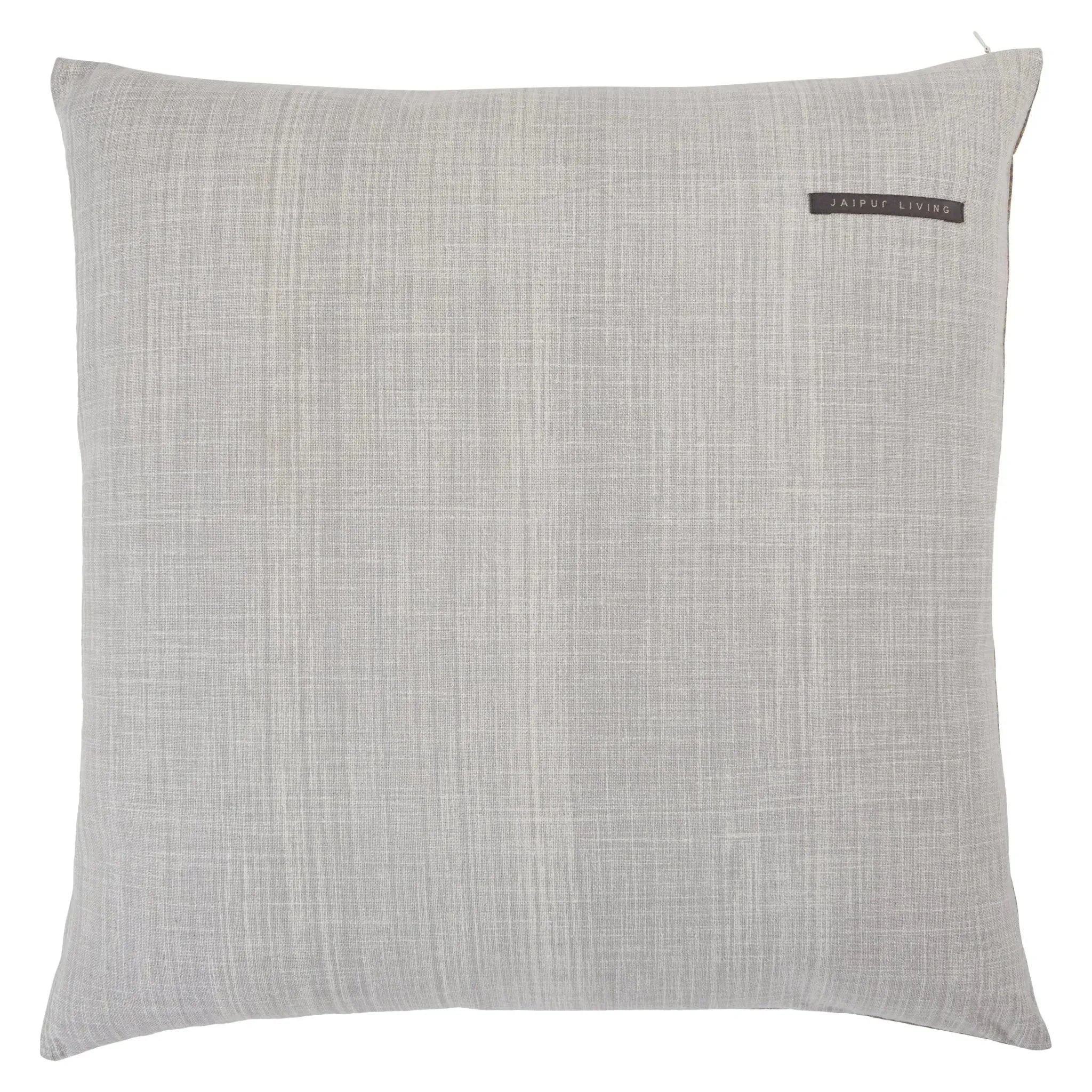 The Revolve pillow collection features remarkable craftsmanship and stunning global motifs. Recalling the opulent look and feel of elegant Italian fabrics, the Bayram pillow boasts a vintage-inspired gilt print on a cotton canvas backdrop. The shimmering gold and gray tones of this accent add a touch of bohemian flair to any space.