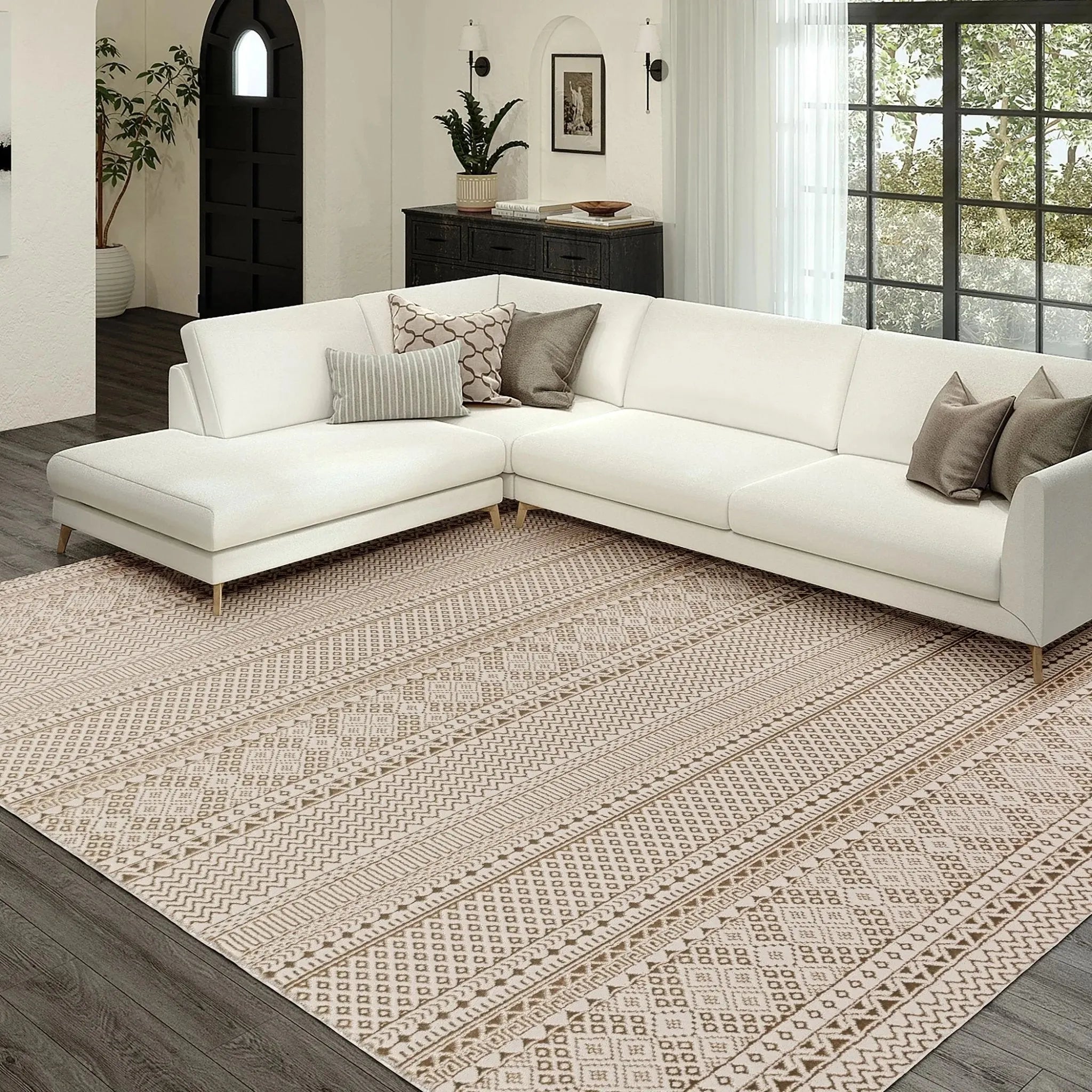 This rug is crafted from 100% New Zealand wool, offering both durability and a luxurious feel.
