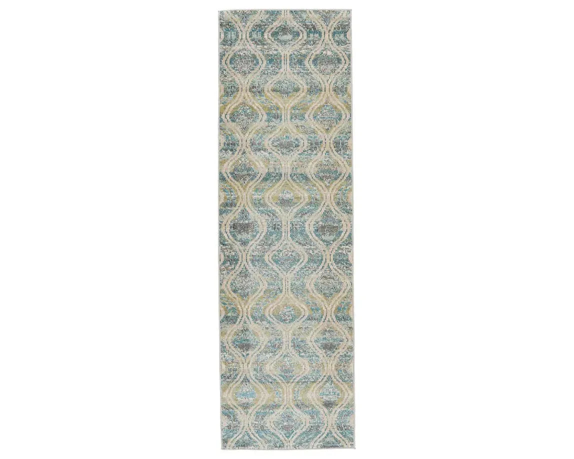 Fun-loving and dynamic define the bright, boho designs the Rhythmik collection by Nikki Chu. The Jive area rug lends vibrancy and unique style to indoor and outdoor spaces with a lively, retro-inspired pattern in a vivid blue, green, and gray colorway. Crafted of weather-resistant polypropylene, this contemporary rug boasts ribbed pile that emulates classic a hand-knotted construction.