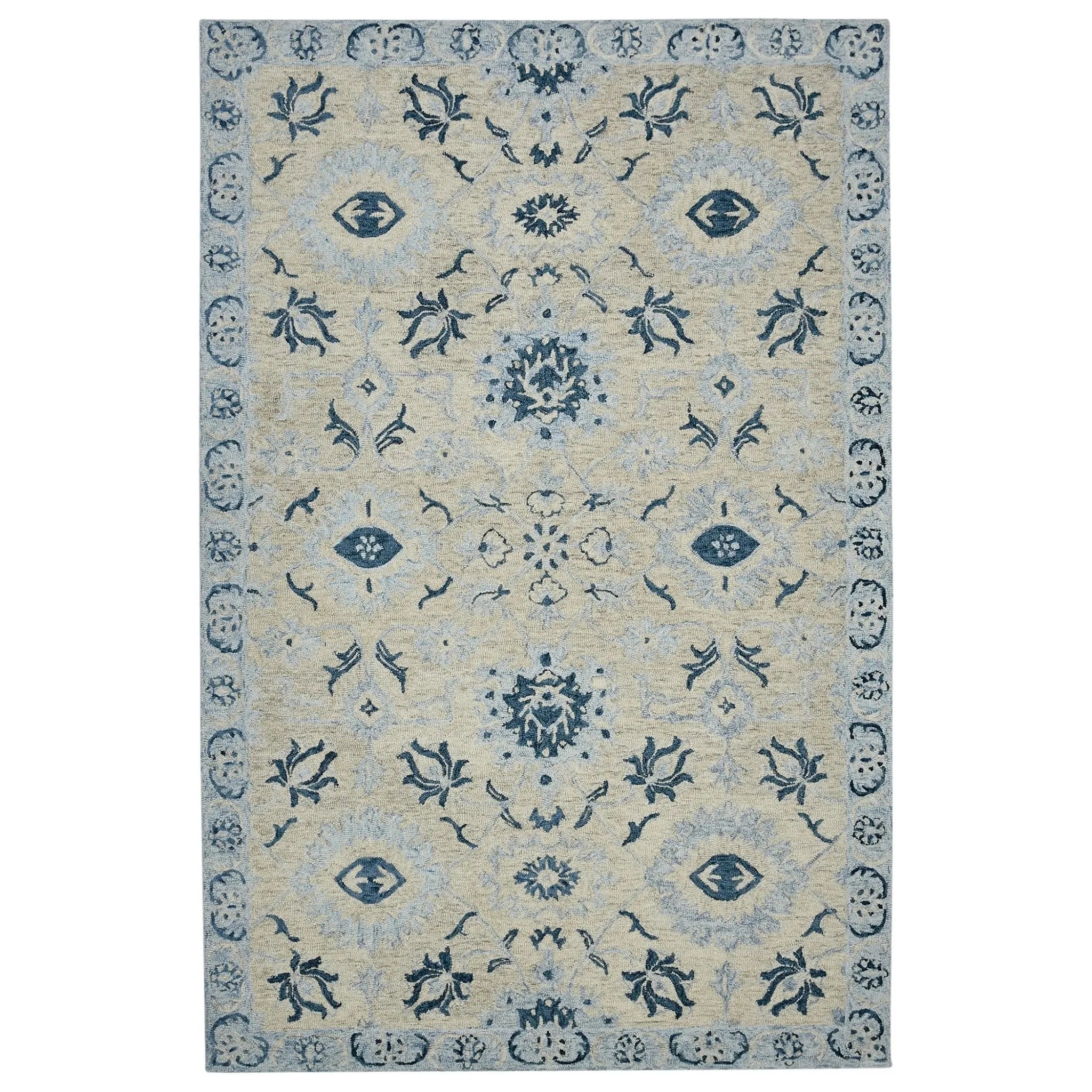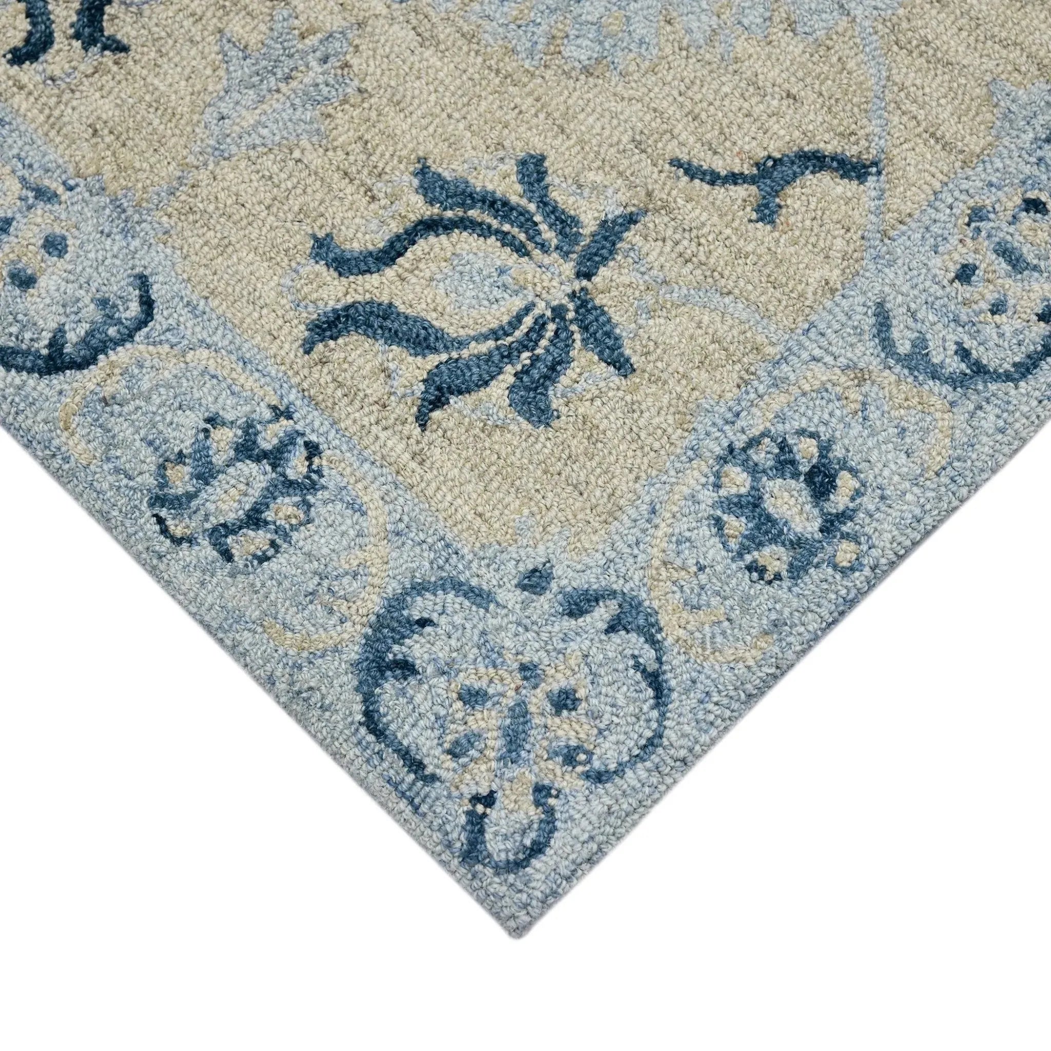 This lovely area rug in a classic floral pattern will be an exceptional addition to your home. It is hand-crafted with pride in India using 100% New Zealand wool, providing the highest level of comfort underfoot. Featuring a cotton backing to help prevent sliding and shifting, this rug is perfect for bedrooms, living rooms, and dining rooms alike.