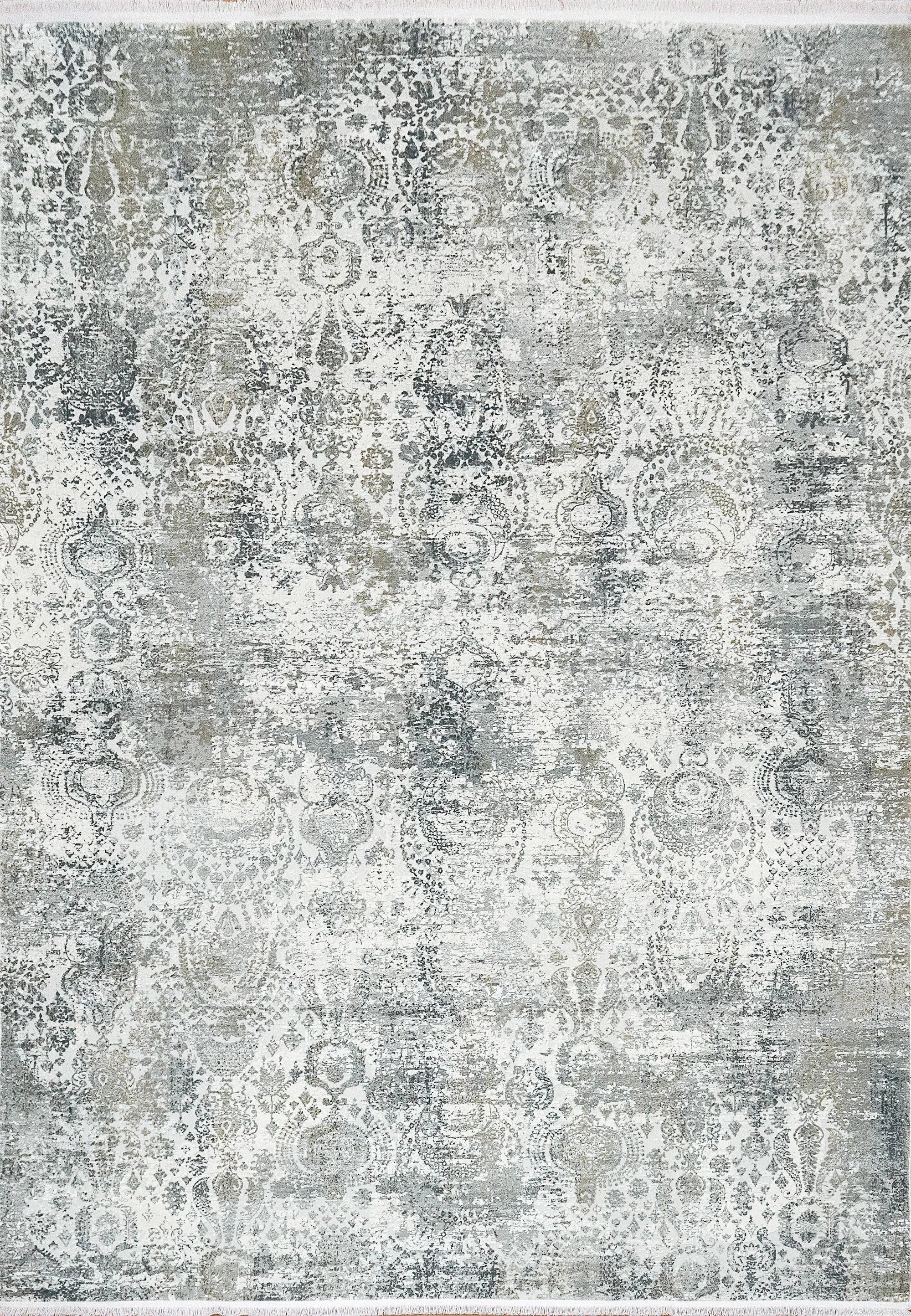 Ruby is made of Viscose and Shrink Acrylic, machine-made in Turkey. The construction and the intricacy of the design work give these rugs a true valuable handmade look with stunning traditional, abstract, and modern designs. The 2 million construction point creates a high-end look with soft hues of grey with pops of captivating blues and folds in its mosaic like texture.
