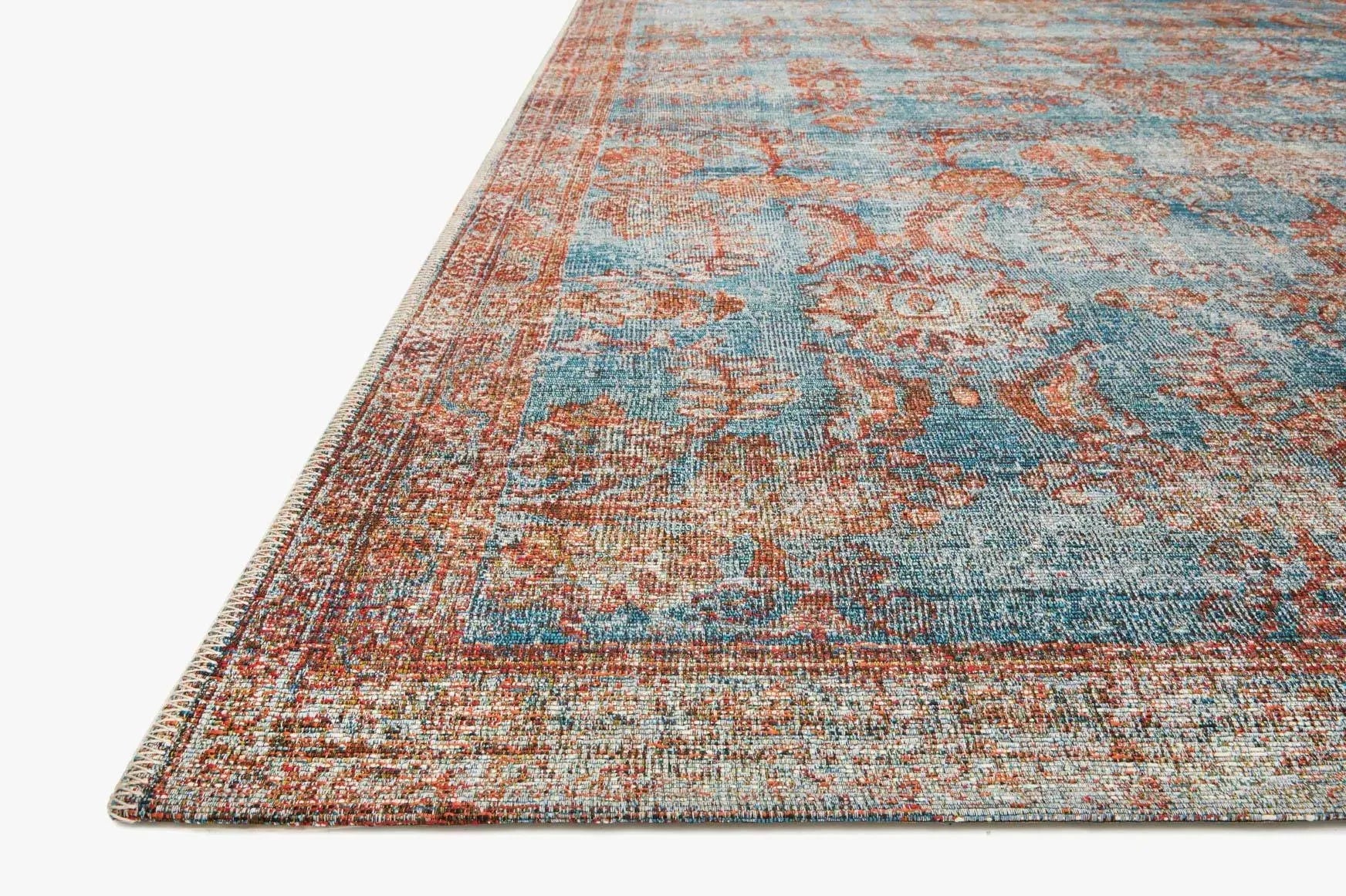 The Parisa PSA06 Denim/Multi Rug comes in various sizes, including 2x10, 5x7, 8x10, 8x11, 9x13, and 12x15 feet, accommodating different room dimensions.