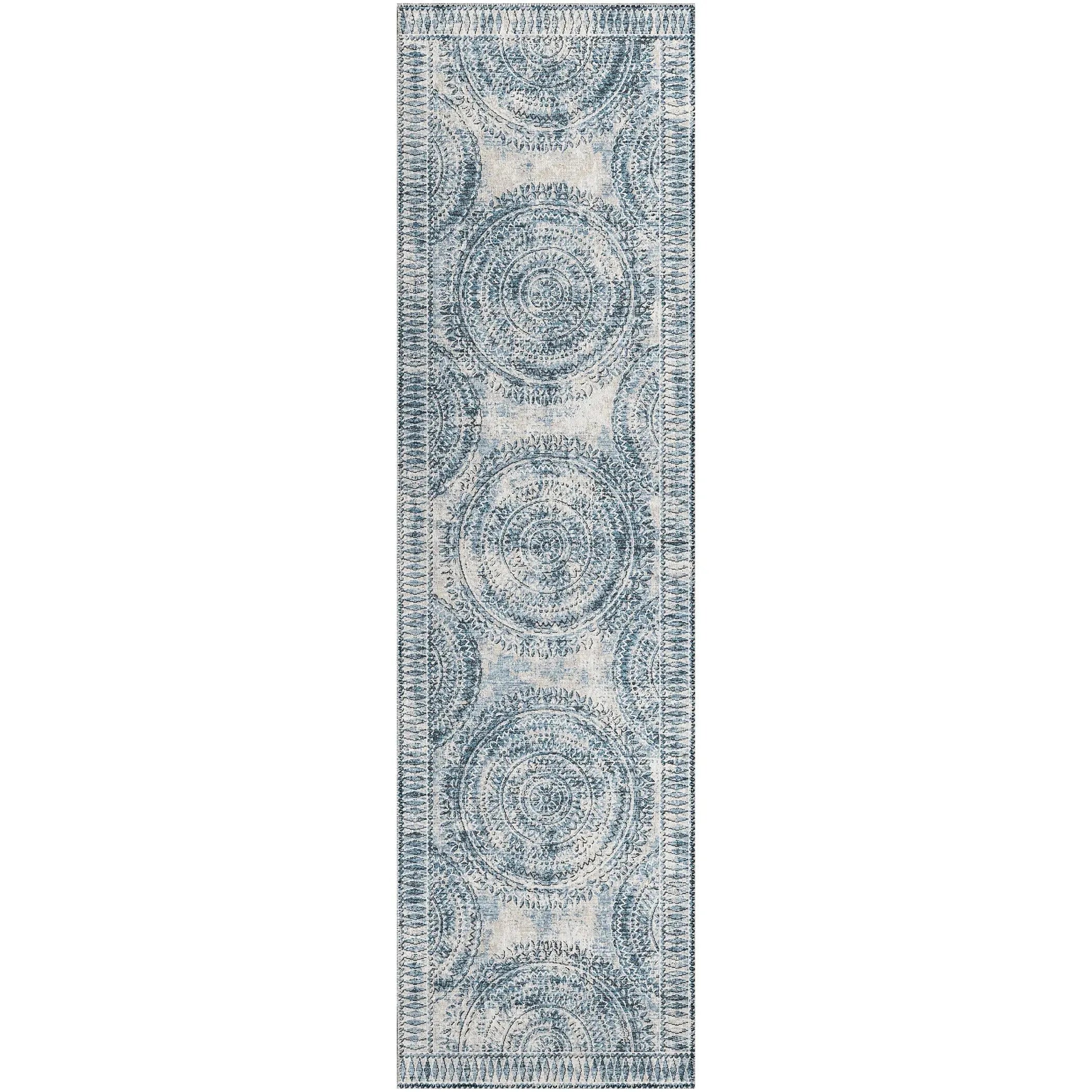 The Parisa PSA06 Denim/Multi Rug comes in various sizes, including 2x10, 5x7, 8x10, 8x11, 9x13, and 12x15 feet, accommodating different room dimensions.