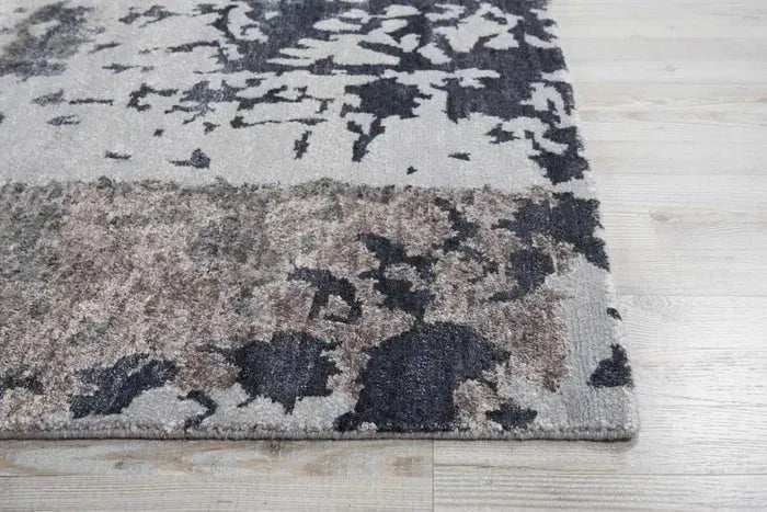 Redefine opulence with this luxurious collection of stunningly elegant rugs. Hand woven from premium wool and silk-like bamboo fibers, each velvety soft rug possesses a subtle yet luminous sheen. Designs feature contemporary and transitional motifs with tasteful colors and tone-on-tone contrasts. All the beauty of a reflecting pool is captured in this luminous abstract design. Shapes shift and ripple across the plush, velvety, handcrafted pile, welcoming your relaxed contemplation. Contemporary yet timeless in a shimmering palette of silvery grey and gleaming obsidian.