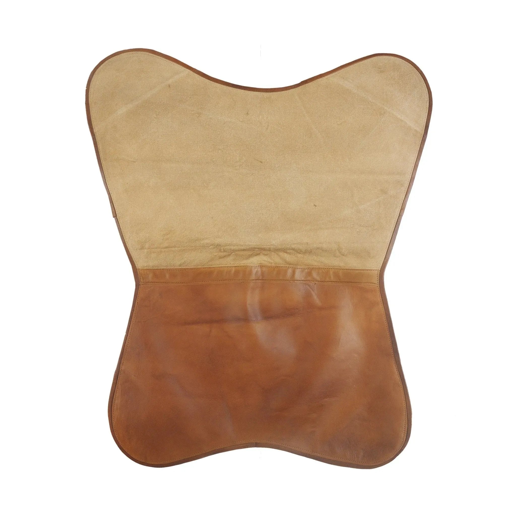 The LR Home sling-style butterfly chair combines stylish design and functional seating. This piece is easily moved from one space to another with its iron-base and removable canvas leather cover. Accented with canvas, the leather in this piece exudes a sophisticated rustic aura perfect for a teen's room, office space, or extra seating in your game room.
