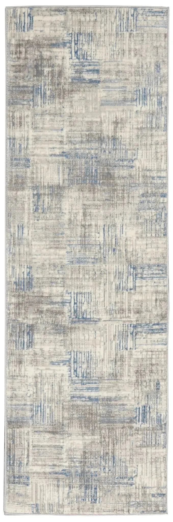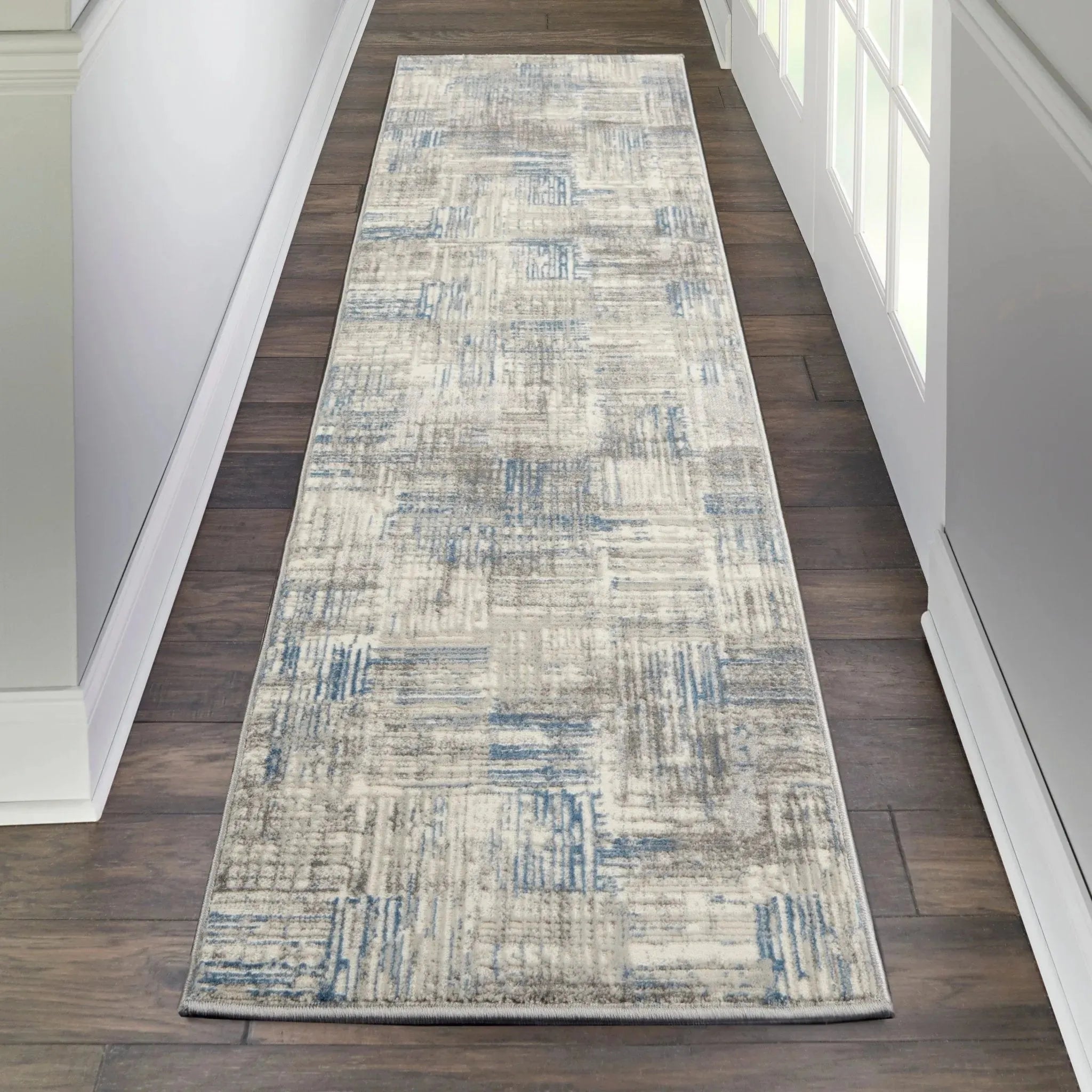 The Parisa PSA06 Denim/Multi Rug comes in various sizes, including 2x10, 5x7, 8x10, 8x11, 9x13, and 12x15 feet, accommodating different room dimensions.