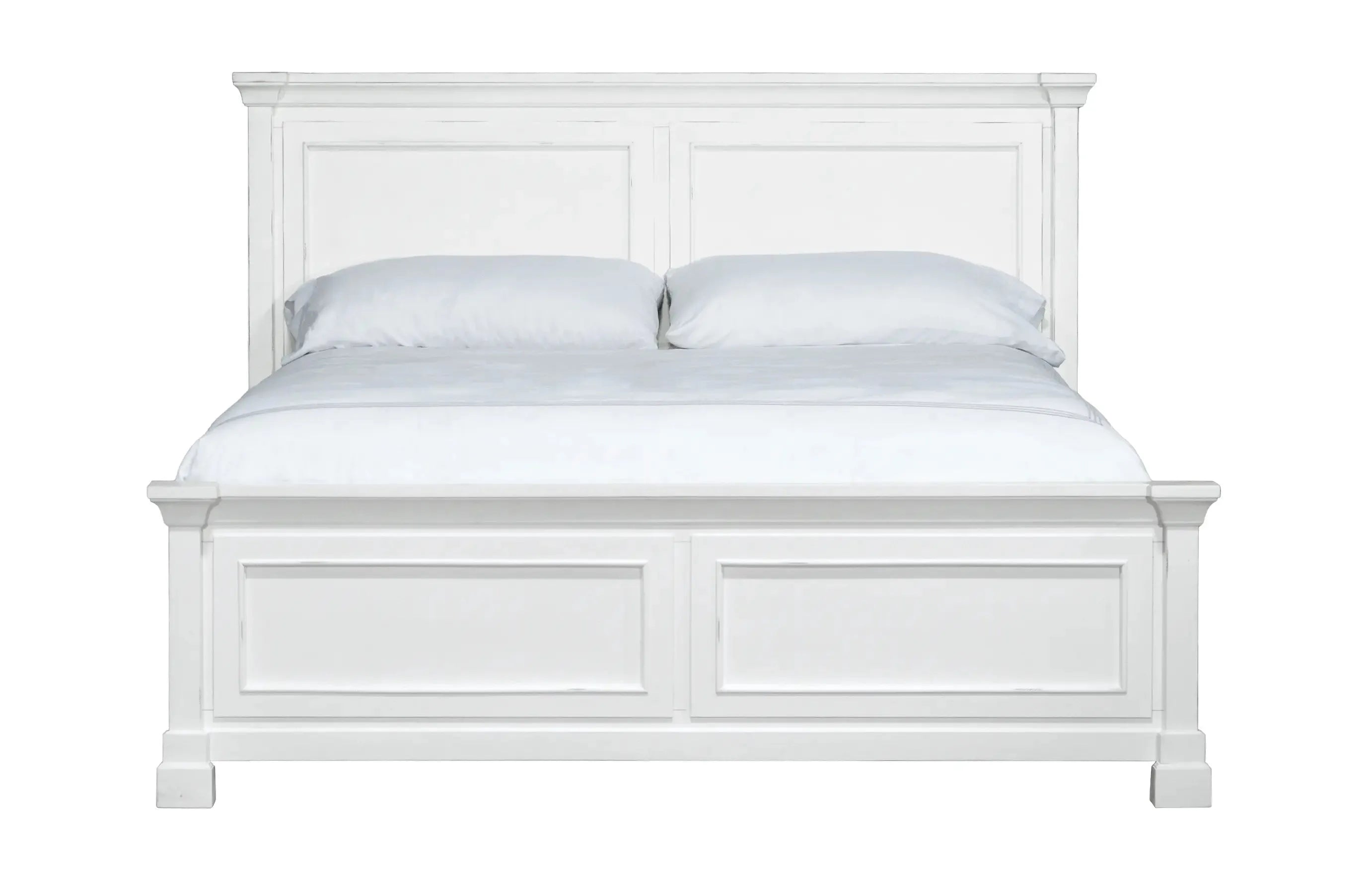 Complete your relaxing retreat with the Stoney Creek bedroom collection. This traditional bedroom set offers large-scale designs with a textured, antique white finish. Antiqued, blackened metal hardware and tapered leg detailing adds a little modern farmhouse charm to your home.