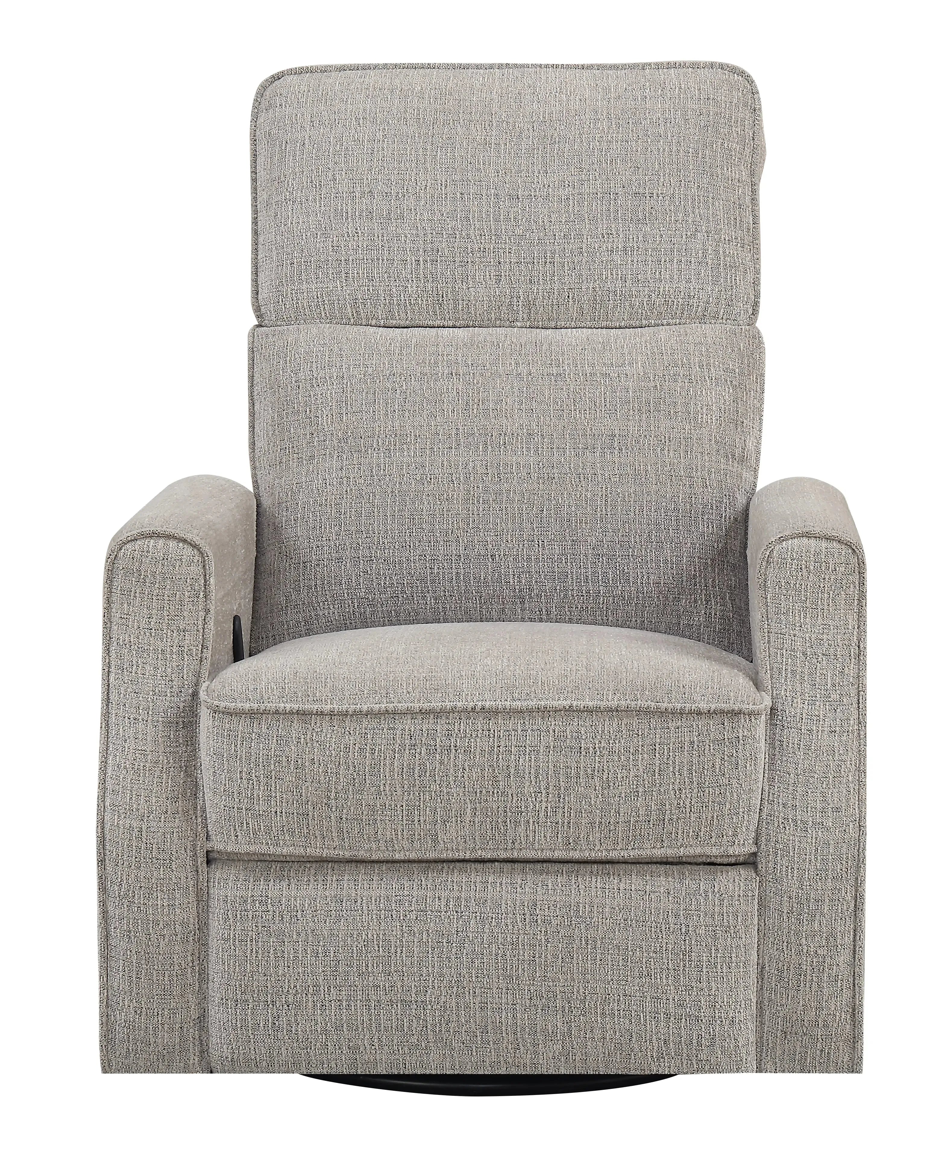 The Tabor chair is a swivel glider recliner destined to be your favorite seat in the house. A full-sized seat with a narrower profile makes it a great fit for smaller spaces that might not accommodate a traditional oversized recliner. The neutral colors ensure it will coordinate with your current furnishings. Get ready to recline in love, with Tabor.