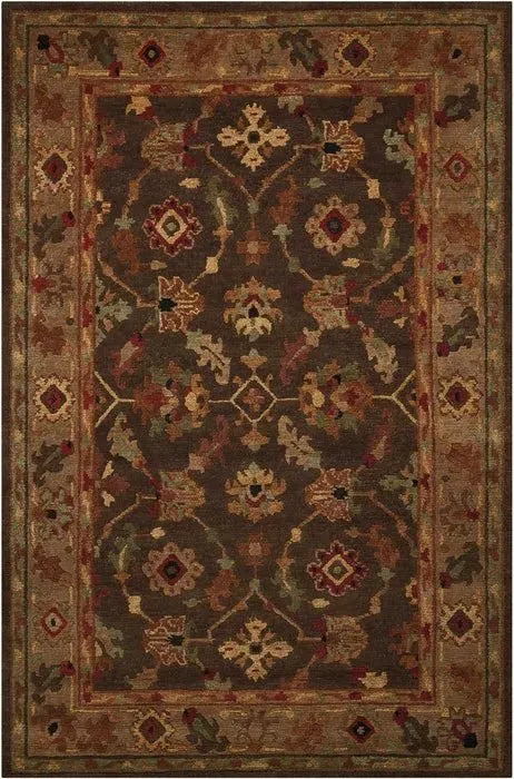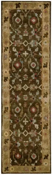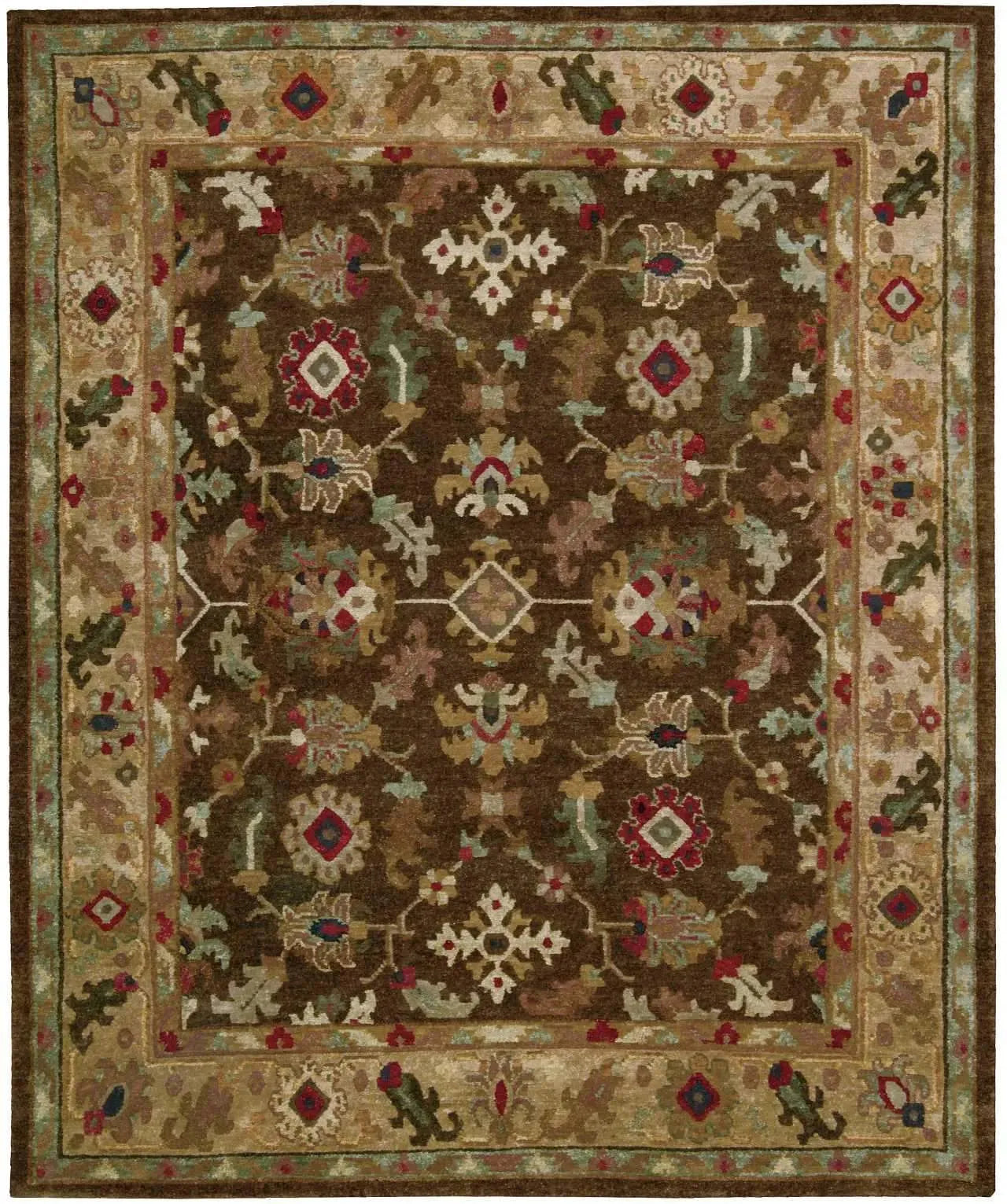 Nourison's Tahoe collection features distinctive, geometric tribal designs in a range of alluring earth tones. Hand-knotted in India of 100% hand-spun and enhanced with a special wash to create a beautiful, subtle patina that will warm up any space. Custom sizes available. This rug is perfect for your living room, dining room, den, bedroom, or any living space.