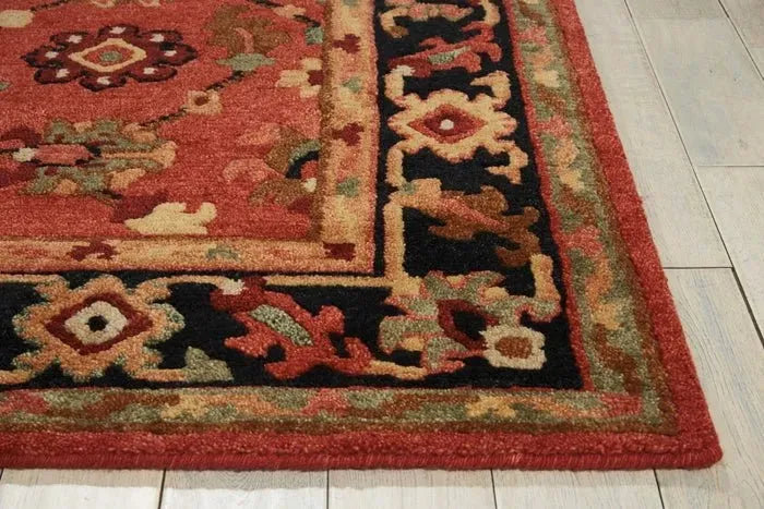 Nourison's Tahoe collection features distinctive, geometric tribal designs in a range of alluring earth tones. Hand-knotted in India of 100% hand-spun and enhanced with a special wash to create a beautiful, subtle patina that will warm up any space. Custom sizes available. This rug is perfect for your living room, dining room, den, bedroom, or any living space.