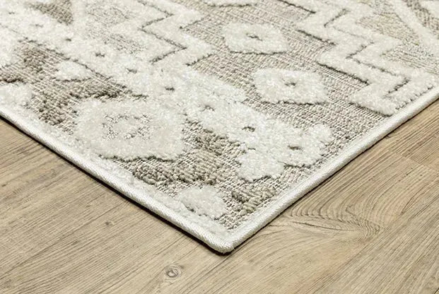 The Tangier collection showcases global patterns in on-trend neutral tones ranging from ivory to warm sand and cool grey. Power-loomed of 100 percent polypropylene with textured and multi-tonal lustrous yarn, Tangier offers a sophisticated look and feel. Tangier’s multi-level construction features plush cut pile, textured loop and flatwoven areas that create a visually intriguing and tactile appeal to any décor.