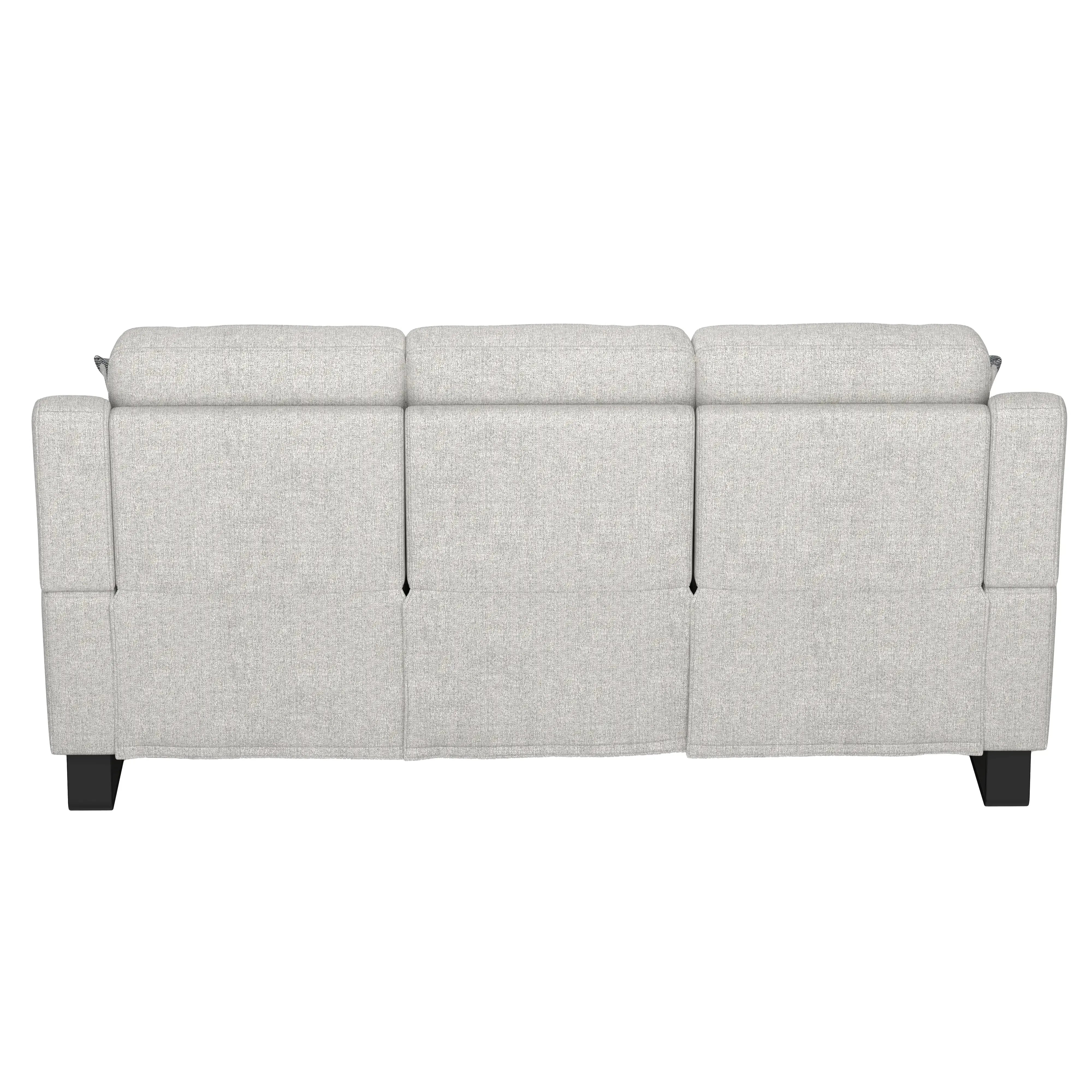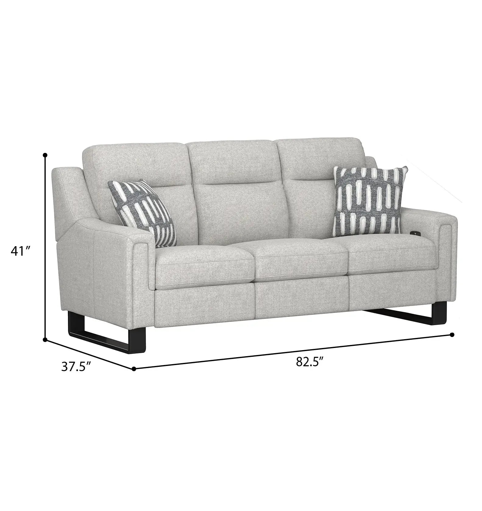 Teagan will change your opinion on motion furniture with its trimmed lines, fashionable fabrics, and thoughtful features. Each piece is designed with a contemporary frame and elevated on sleek metal sleigh legs for a modern touch. The sofa goes a step further with a built-in drop-down table featuring stainless steel cupholders and a storage drawer to combine style with practicality. Dual power functionality allows each person to separately adjust the head and foot rests to their optimum comfort. Beige and cream-flecked fabric upholsters the sofa and loveseat while coordinating recliners in a muted brown leather or patterned fabric will make you want to put Teagan front and center.
