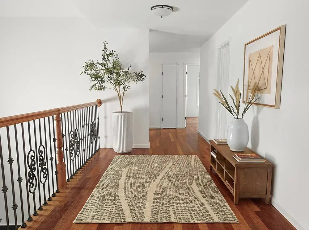 This rug is crafted from 100% New Zealand wool, offering both durability and a luxurious feel.
