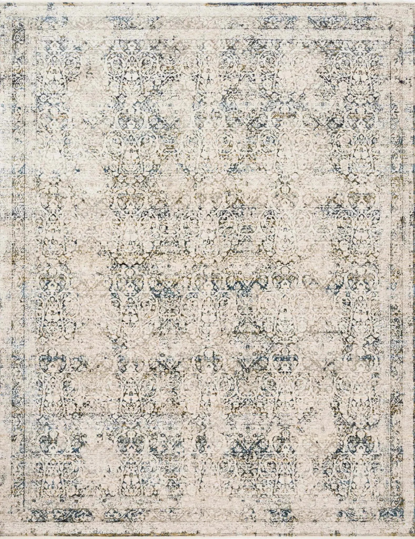 The Parisa PSA06 Denim/Multi Rug comes in various sizes, including 2x10, 5x7, 8x10, 8x11, 9x13, and 12x15 feet, accommodating different room dimensions.
