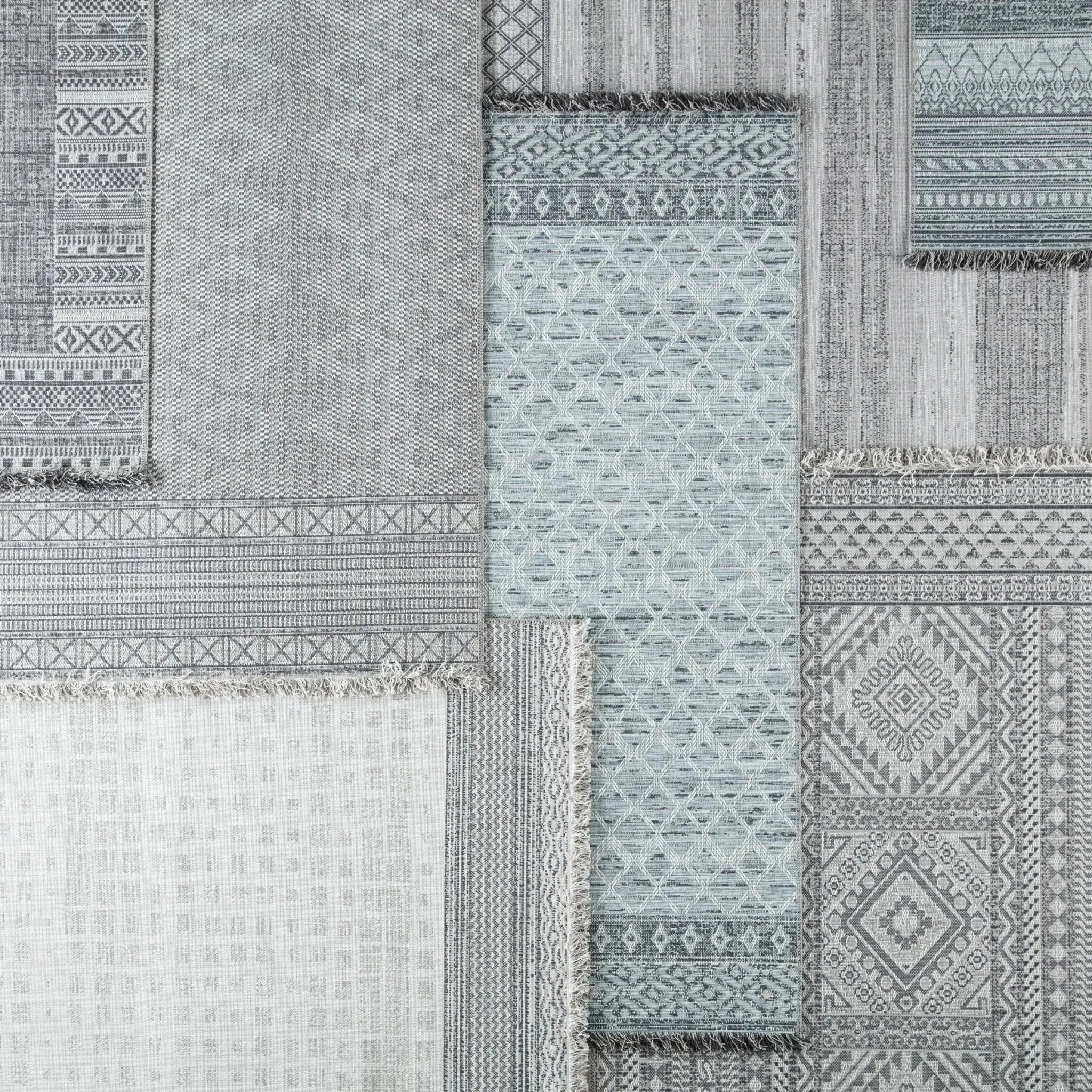 With an assortment of relaxed, bohemian designs, the Tikal collection is the perfect weather-resistant and stylish accent for outdoor and indoor settings. The flat-woven Marion rug features bands of tribal patterning accented by a distressed checkered center and texture-rich fringe. The tonal gray colorway offers a versatile decorating palette to any space.