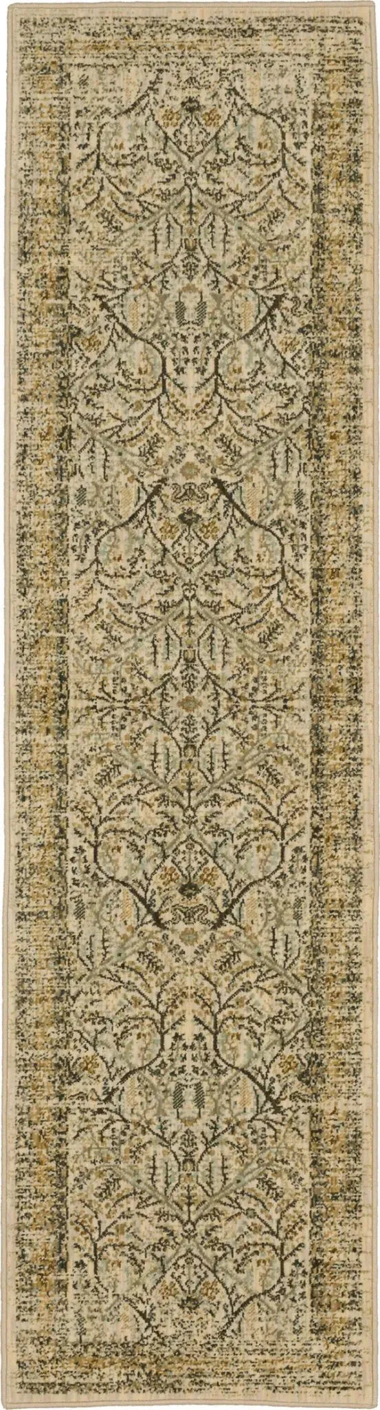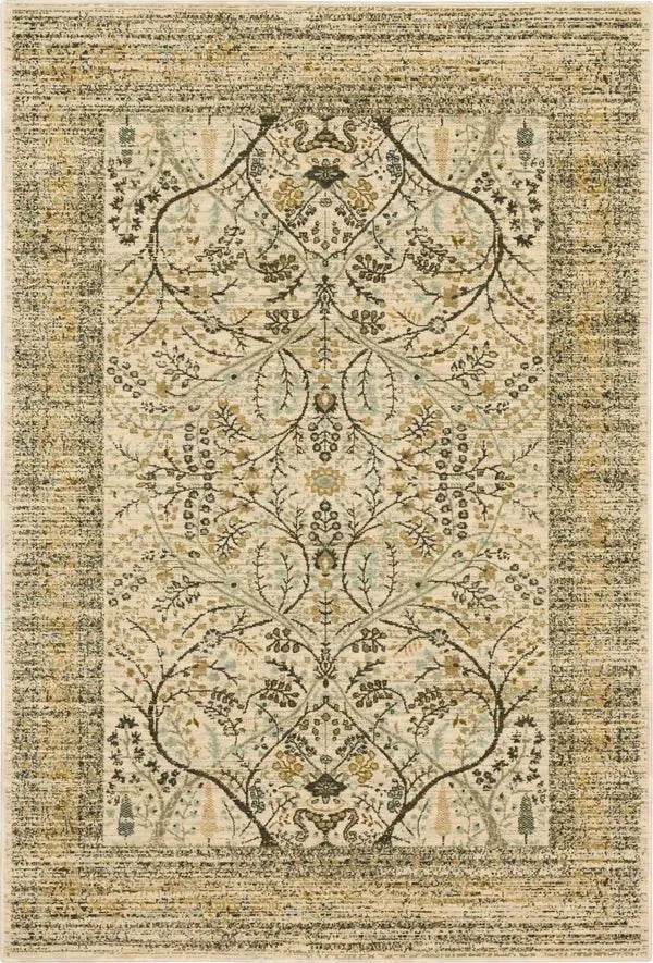 Sprawling tree of life inspired artistry creates the style of Karastan Rugs' Sans Pareil, cast primarily in a soft ivory hue. The mesmeric motif is stunningly highlighted by eye catching notes of metallic yarn woven throughout. Beautifully designed with Karastan Rugs' Van de Wiele woven construction, the San Pareil features rich texture with its innovative blend of matte wool and viscose sheen.