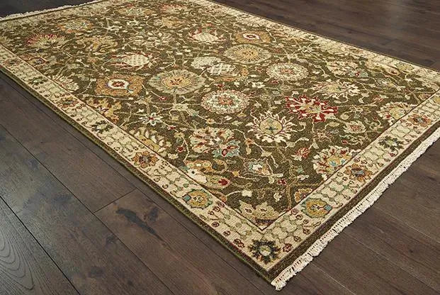 The rug showcases an exceptional Persian floral design with curvaceous leaves, bright blossoms, and other classic botanical motifs, bringing vivid energy to your living space.
