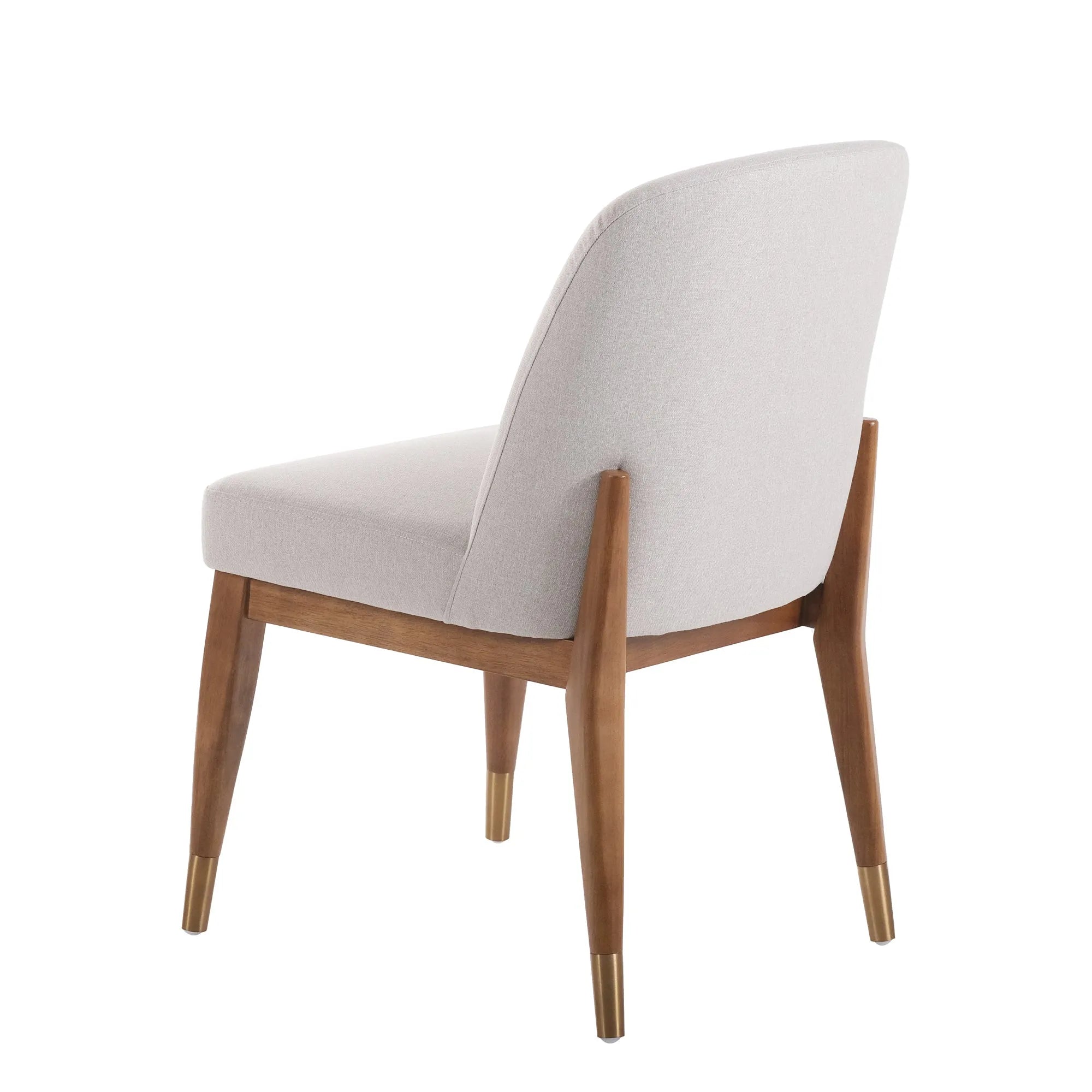 This dining chair invites family and friends to linger in comfort and style. Tapered legs lend a subtle mid-century touch while metal caps add metallic flair. Order in quantities of 2.