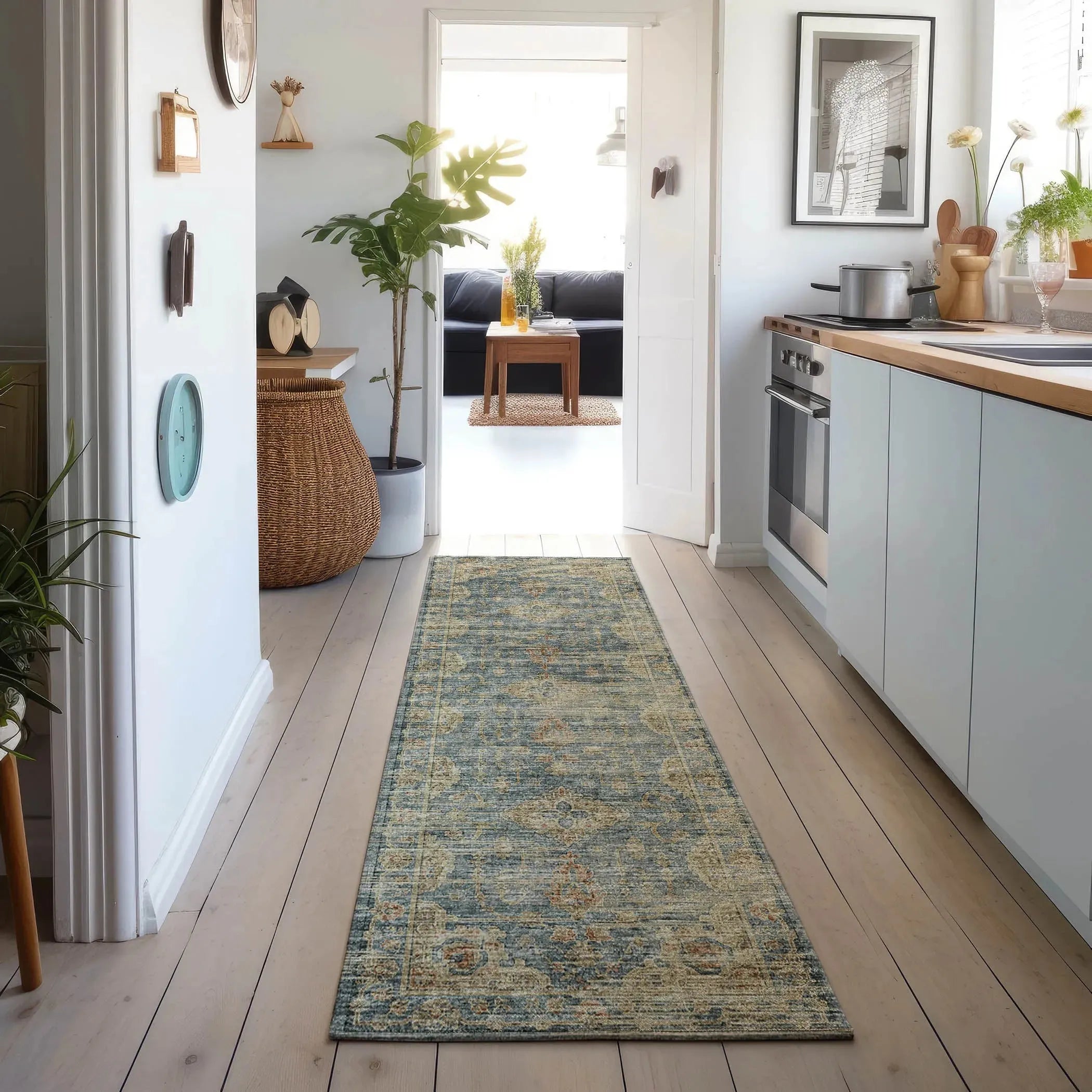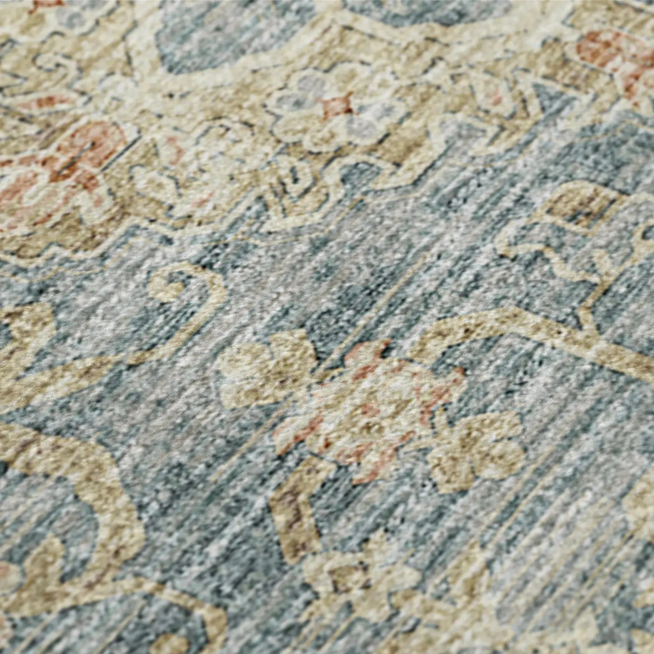 The Parisa PSA06 Denim/Multi Rug comes in various sizes, including 2x10, 5x7, 8x10, 8x11, 9x13, and 12x15 feet, accommodating different room dimensions.