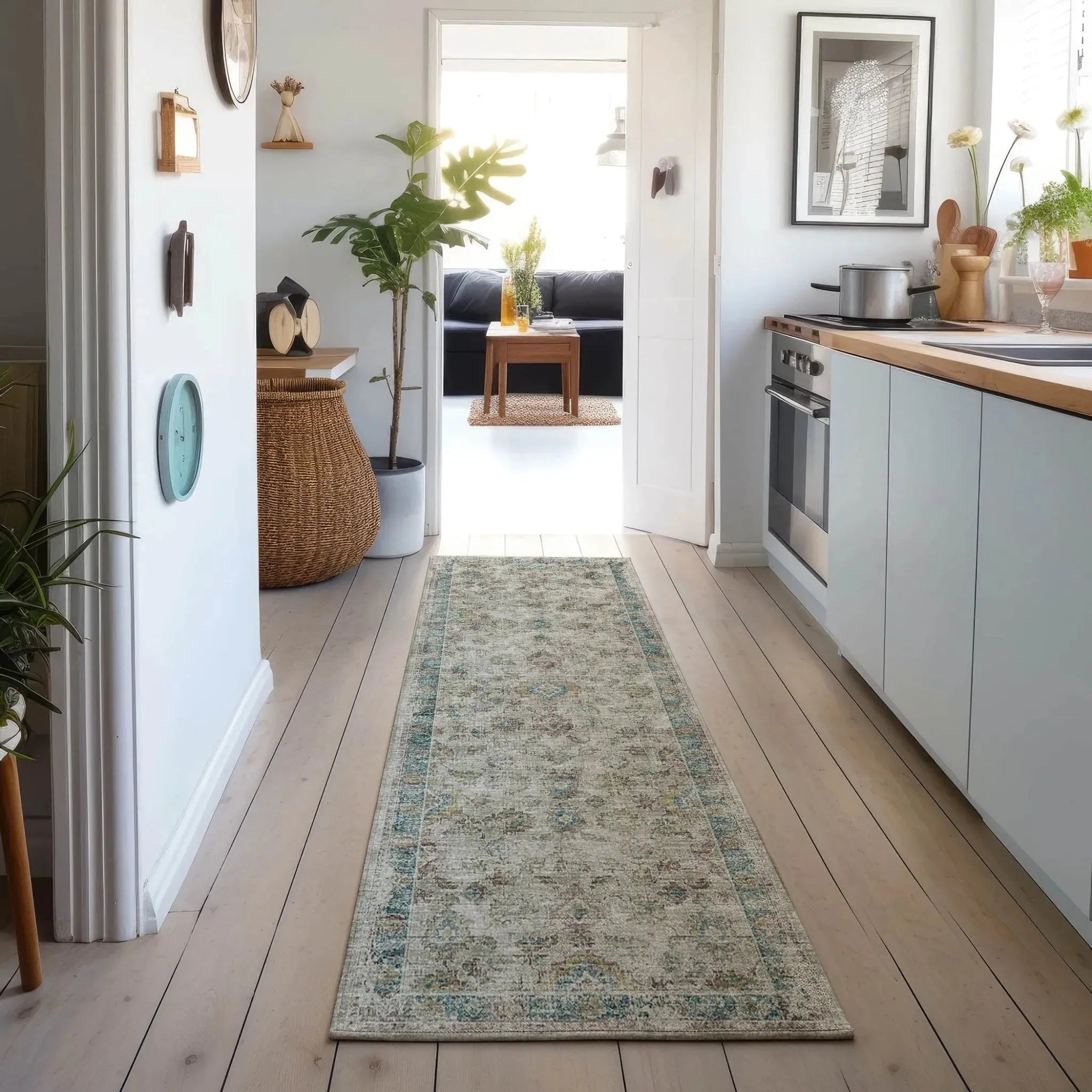 The Parisa PSA06 Denim/Multi Rug comes in various sizes, including 2x10, 5x7, 8x10, 8x11, 9x13, and 12x15 feet, accommodating different room dimensions.