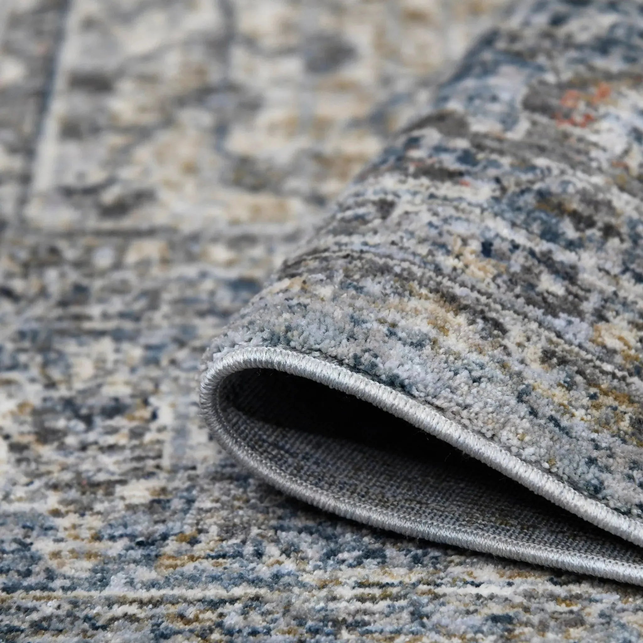 The Parisa PSA06 Denim/Multi Rug comes in various sizes, including 2x10, 5x7, 8x10, 8x11, 9x13, and 12x15 feet, accommodating different room dimensions.