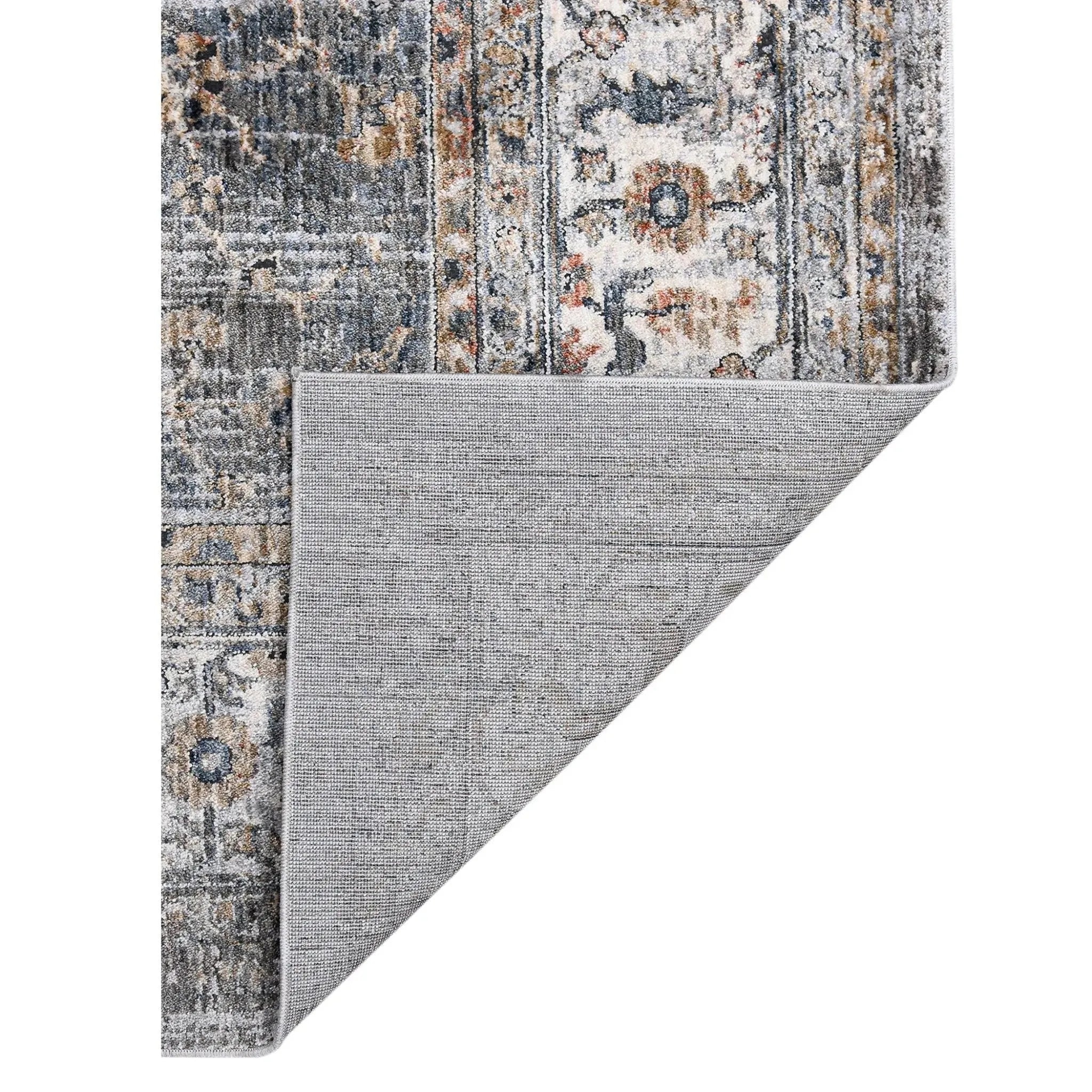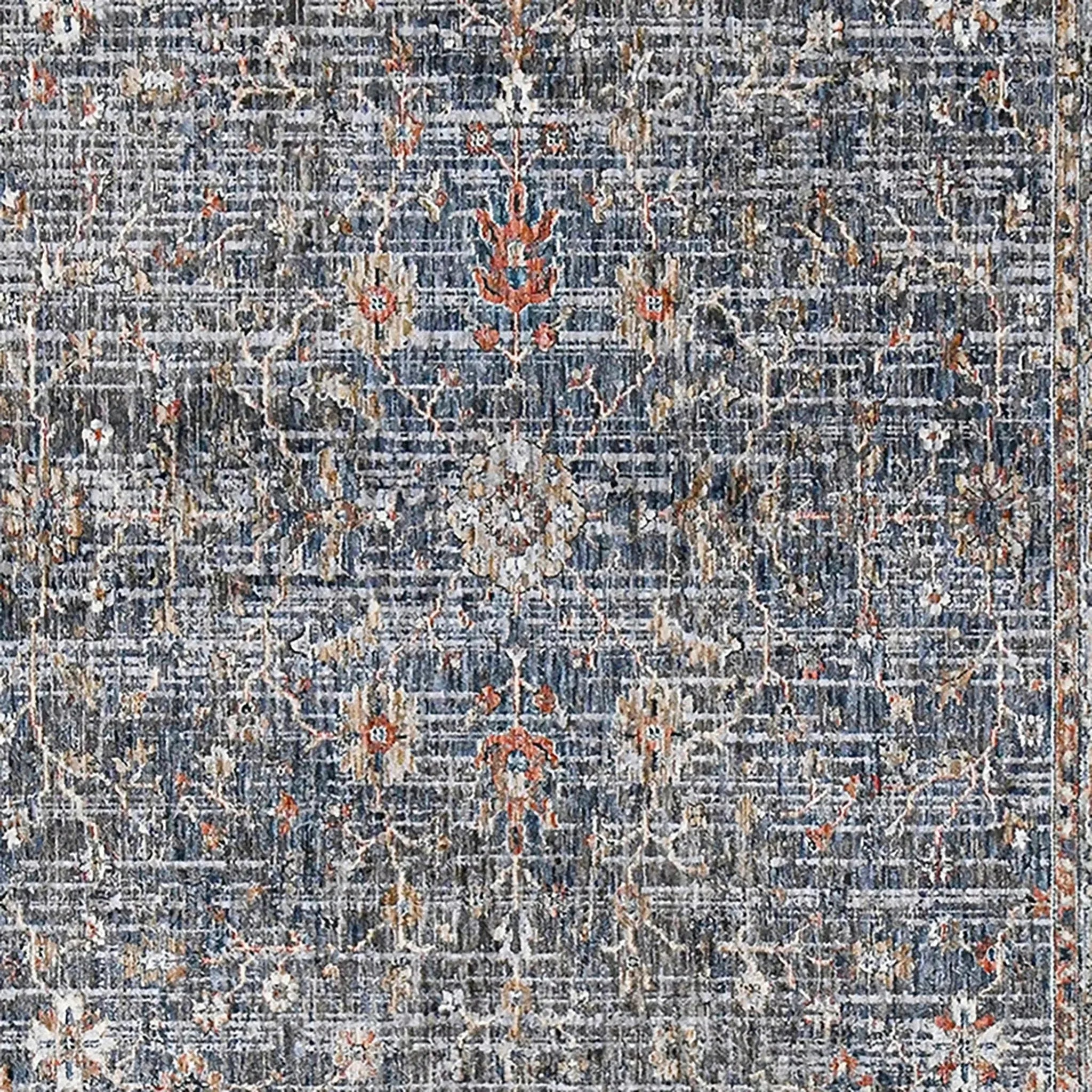 The Parisa PSA06 Denim/Multi Rug comes in various sizes, including 2x10, 5x7, 8x10, 8x11, 9x13, and 12x15 feet, accommodating different room dimensions.