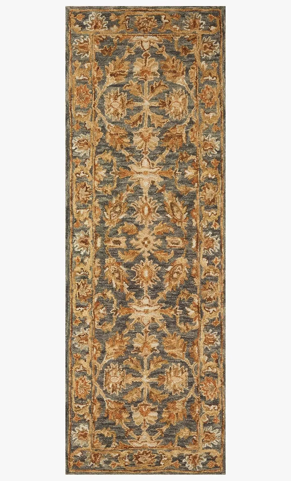 The Parisa PSA06 Denim/Multi Rug comes in various sizes, including 2x10, 5x7, 8x10, 8x11, 9x13, and 12x15 feet, accommodating different room dimensions.