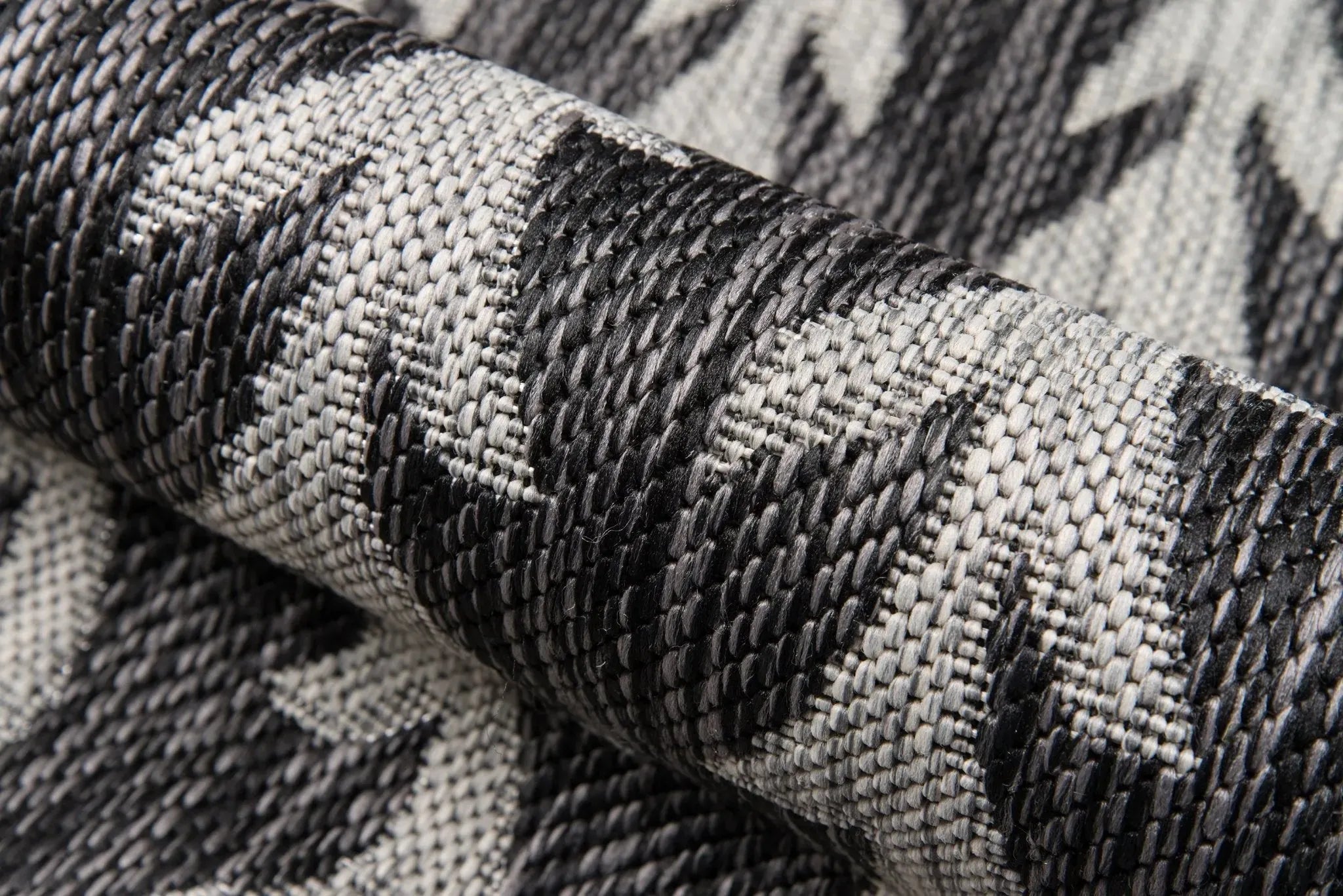 An indoor/outdoor rug assortment that exudes contemporary cool, this modern area rug collection features repetitive patterns inspired by international architectural motifs. The all-weather rug series emphasizes graphic geometric prints, using high contrast charcoal grey, chambray blue, fuchsia pink and russet red shades to draw attention toward the floor. Manufactured from durable polypropylene fibers, the decorative floorcovering series is a staple for statement-making interior and exterior spaces.