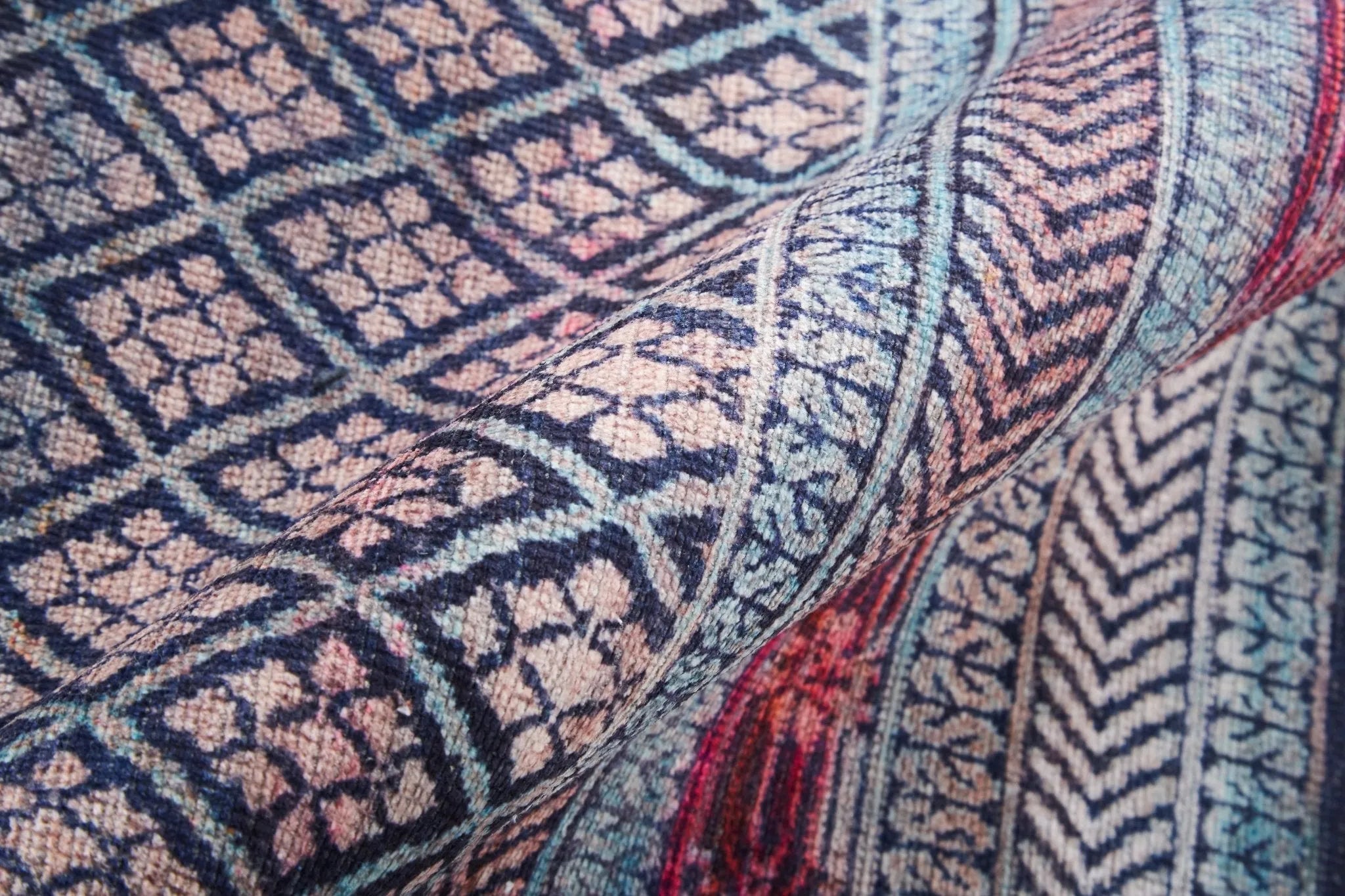 The Parisa PSA06 Denim/Multi Rug comes in various sizes, including 2x10, 5x7, 8x10, 8x11, 9x13, and 12x15 feet, accommodating different room dimensions.