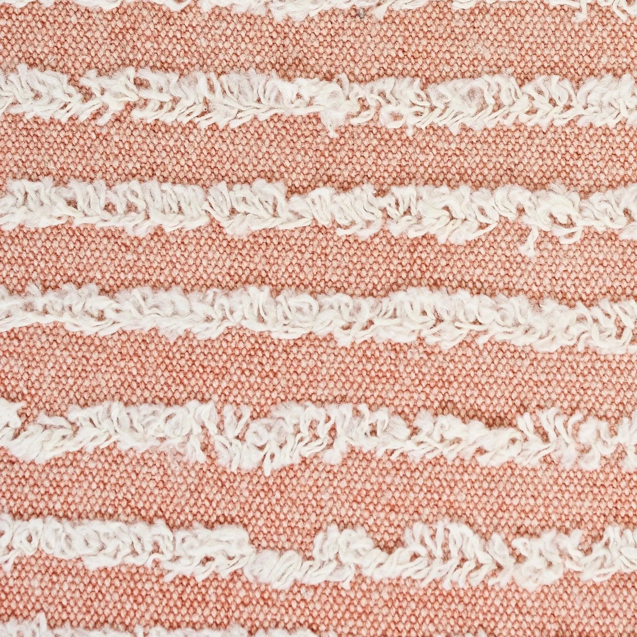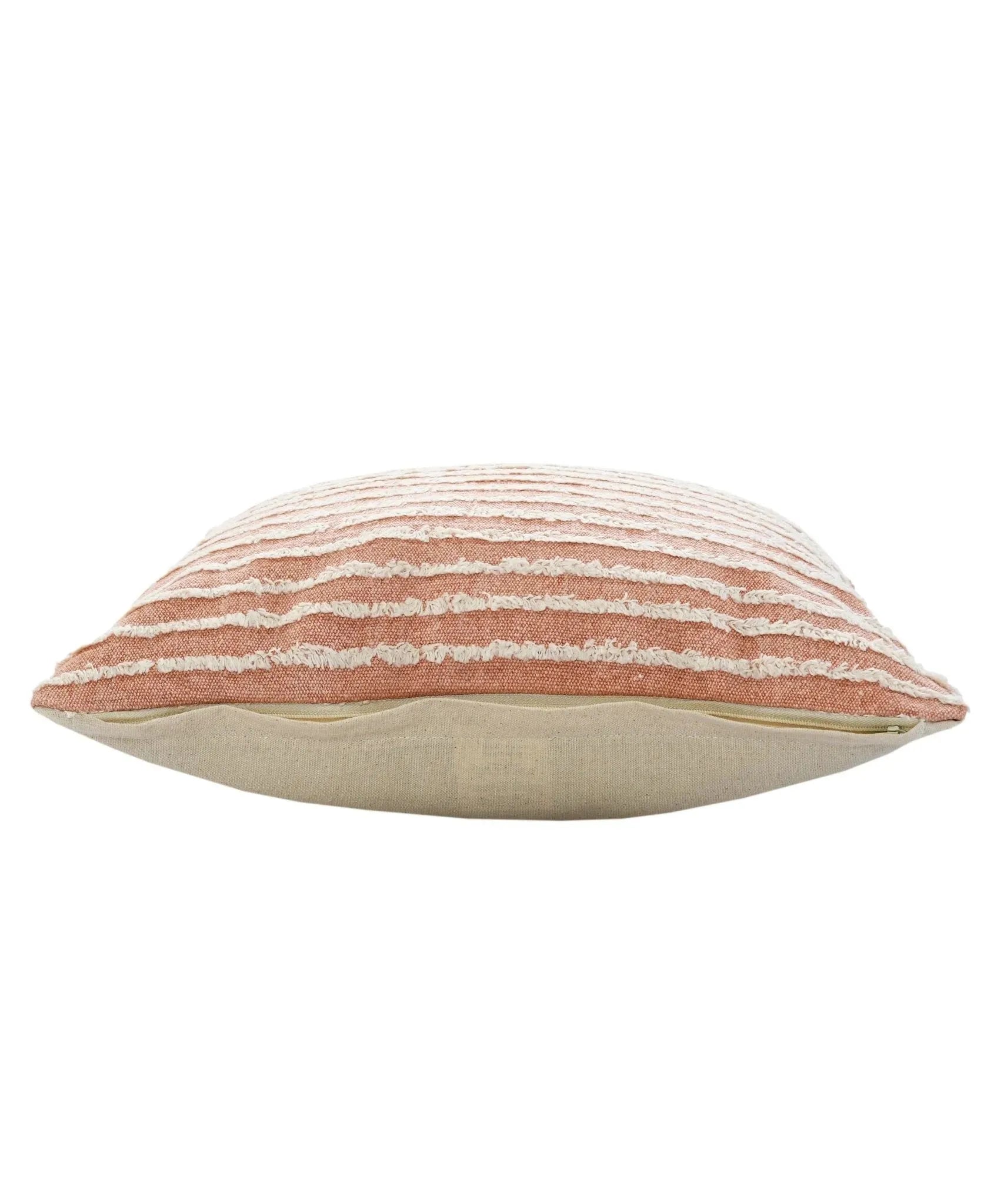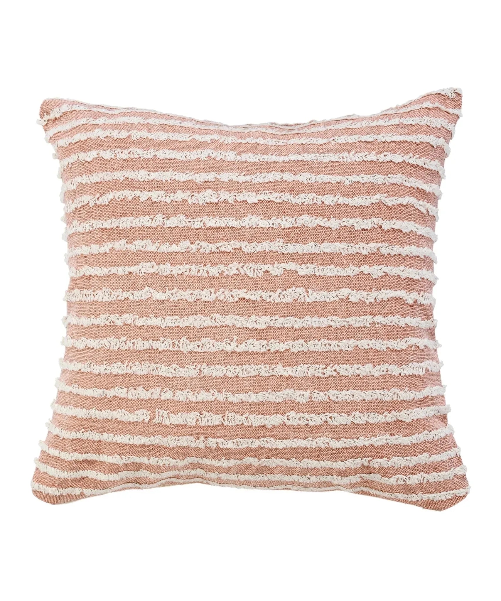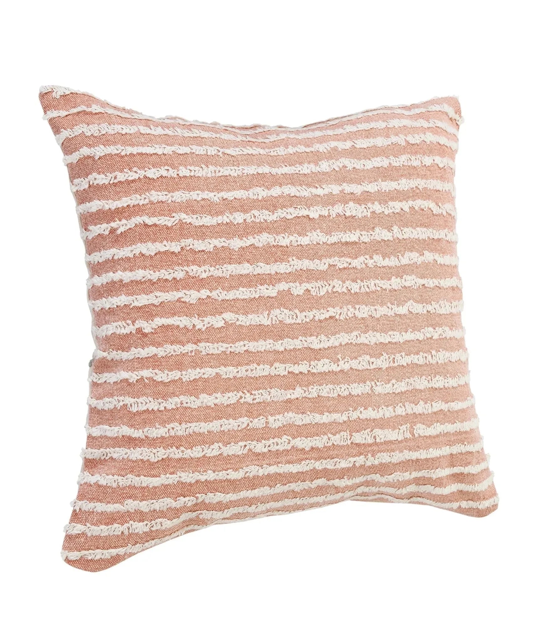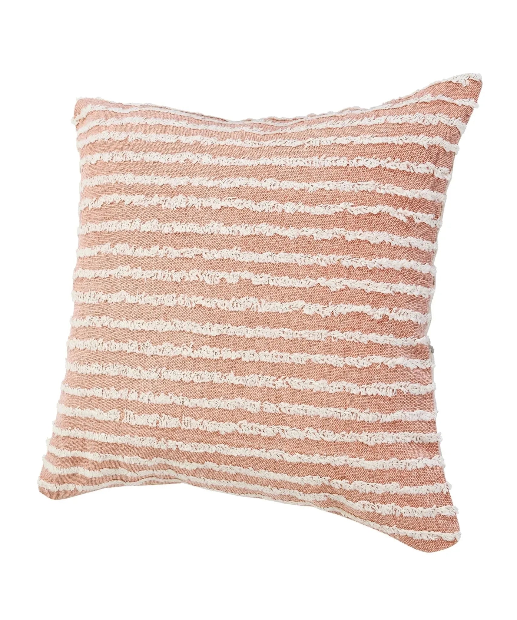 The Wispy Ways pillow collection boasts whimsical textures in a variety of colors and sizes. These unique accents bring playful energy into your space while remaining stylishly chic. This piece features short tufted horizontal stripes atop a stonewash dusty pink backing. This well-balanced creation exudes calming neutral energy to easily coordinates various home styles and themes. Place this accent in a bedroom, living space, kid's area, or entryway for eye-catching style and endless compliments. Handcrafted with the customer in mind, there is no compromise of comfort and style with the pillow line we create.