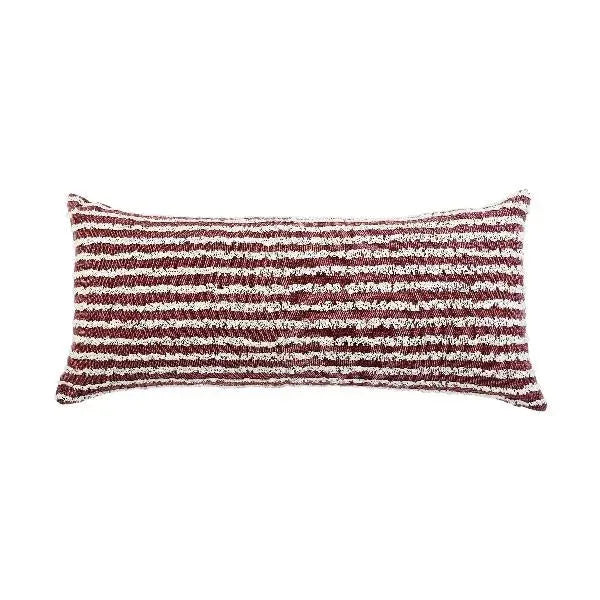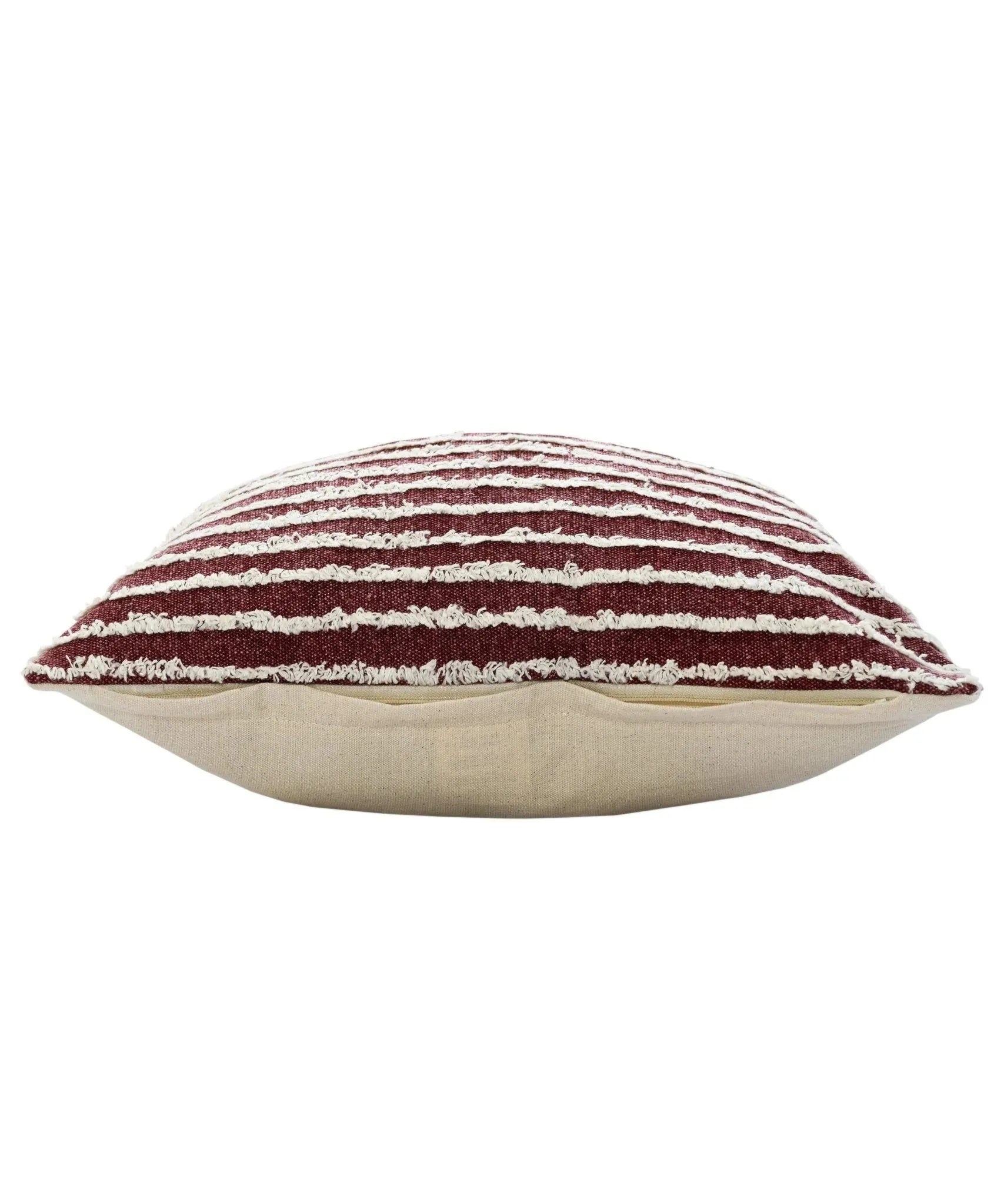 The Wispy Ways pillow collection boasts whimsical textures in a variety of colors and sizes. These unique accents bring playful energy into your space while remaining stylishly chic. This piece features short tufted horizontal stripes atop a stonewash merlot red backing. This well-balanced creation exudes calming neutral energy to easily coordinates various home styles and themes. Place this accent in a bedroom, living space, kid's area, or entryway for eye-catching style and endless compliments. Handcrafted with the customer in mind, there is no compromise of comfort and style with the pillow line we create.
