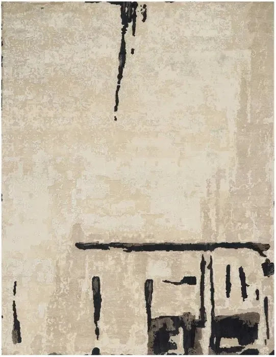 Soft neutral tones seem to flow across the surface of this wool and silk rug, creating a feeling of peaceful movement.