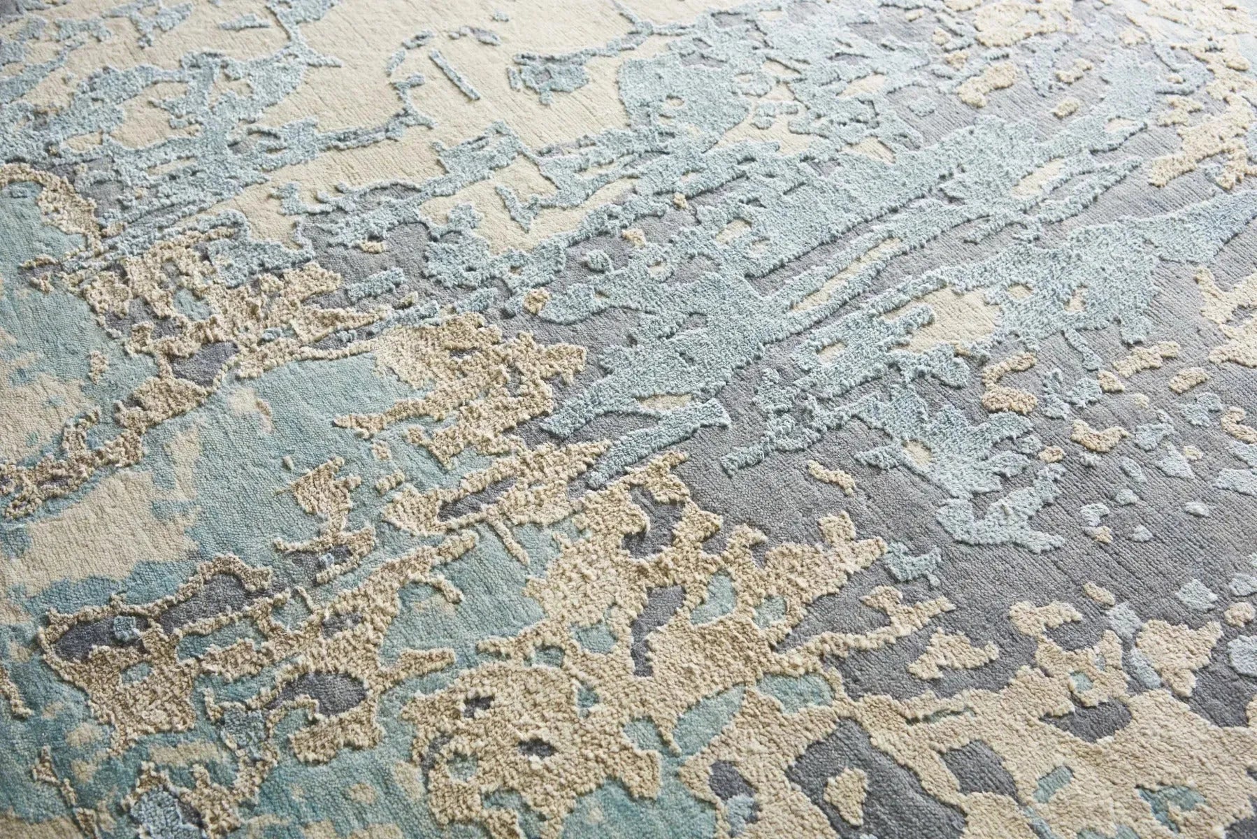 Soft neutral tones seem to flow across the surface of this wool and silk rug, creating a feeling of peaceful movement.