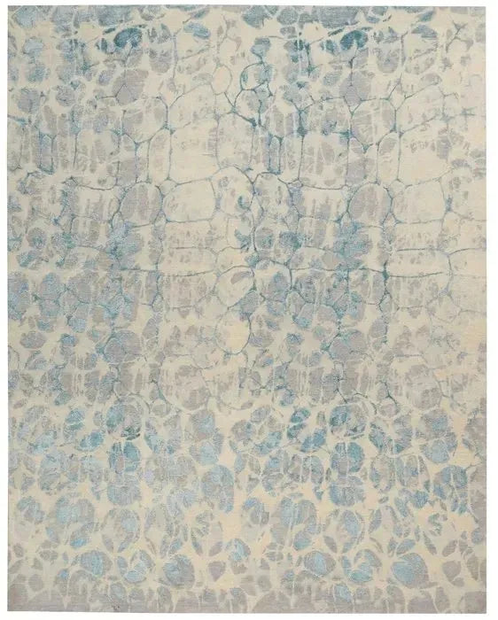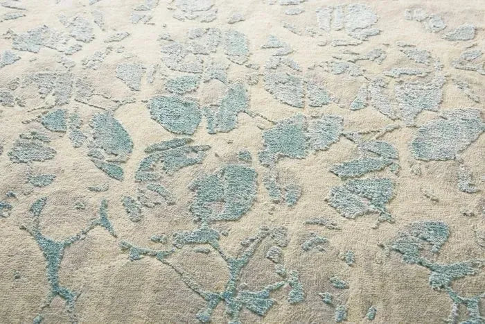 Soft neutral tones seem to flow across the surface of this wool and silk rug, creating a feeling of peaceful movement.