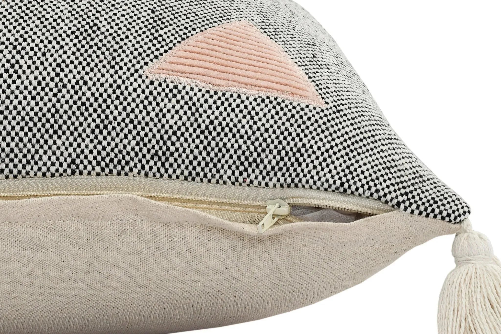 Replenish your soul in nostalgic joy with our Zeal Collection! This collection offers soft, plush textures with playful bohemian vibes. This accent features charming geometric cotton velvet patchwork that frames the center and corners before transitioning to playful tassels. Displaying a coordinating contemporary mix of gray, hunter green, blush pink, and cream, this throw pillow will enhance your home's vibrancy. Place this accent in a bedroom, living space, kid's area, or entryway for eye-catching style and endless compliments. Handcrafted with the customer in mind, there is no compromise of comfort and style with the pillow line we create.